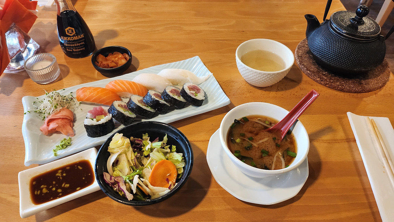 175번 버스를 타고 바르샤바 시내에 도착하니 삼성 광고가 나를 반겨주었다. 특히 내 플립4가 엄청 반가워한 것 같았다. 배가 고팠기 때문에 우선 점심을 먹었다. 외국 식당에 혼자 들어가 본 경험이 아직 없었기에, 그나마 익숙한 아시아 식당에 가고자 했다. 정갈해 보이는 일식집을 발견하여 잠깐 고민하다 들어갔다. 점심 초밥 세트를 주문하자, 곧바로 녹차와 샐러드, 미소된장국을 가져다주었다. 우리나라를 떠난 지 며칠 되지도 않았지만, 그 미소된장국은 벌써 내게 감동을 주었다. 보통 미소된장국과는 다르게 굉장히 진해서 우리나라에서 먹던 된장국이 바로 떠올랐을 만큼 내 입맛에 완벽히 맞았다. 불현듯 여기에 밥을 말아먹고 싶다는 생각이 머리에 스쳤다. 얼마 뒤 초밥 10조각이 나왔는데, 그중 6조각은 내가 알던 초밥이 아니라 회가 들어있는 김밥이었다. 살짝 아쉬운 마음이 들었지만 그래도 맛있게 먹었다.