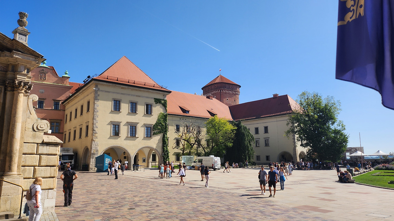 유대인 거리로 가기 전에 바벨 성에 들렀다. 궁전만큼 화려하지는 않았지만 규모는 그 이상이었다. 겉보기와는 다르게 내부가 썩 인상 깊지는 않았다. 지그문트 종을 보러 좁은 탑을 통해 올라갔는데, 먼저 올라가 있는 사람들이 그 거대한 종을 만지며 소원을 빌고 있었다. 너무 사람이 많아 만지지는 않고 도시 전망만 슬쩍 보고 다시 내려갔다. 성 밖으로 나가서 청명한 하늘 아래 있는 성을 다시 보니 예뻐서 동행과 서로 열심히 사진을 찍어주었다. 이후 더 남쪽으로 가서 유대인 거리를 돌아다녔다. 유대인 거리는 분위기가 많이 달랐다. 깔끔한 파스텔 톤의 건물들과 갈색 벽돌로 이루어진 성벽들로 이루어진 구시가지와는 다르게, 돌벽에 낙서도 많고 지저분했다. 어떤 유대인 회당이 보여 들어가 보려 했으나, 입장료를 걷길래 들어가지 않고 바로 점심을 먹을 식당을 둘러보았다. 구글맵도 활용해 평이 좋은 Plac Nowy 1에 갔다. 피자 하나와 파스타 하나를 주문했다. 잠시 후 종업원이 음식을 가져왔는데 당혹 네 종류의 치즈가 들어간 피자와 치즈 파스타를 가지고 오는 종업원을 보고 당혹스러움을 감추지 못했다. 음식에 대한 설명이 폴란드어로 되어 있어 제대로 알아보지 못한 탓이었다. 그래도 최대한 다 먹기 위해 음료를 한 잔씩 추가로 주문하여 그 느끼함을 중화시키려는 노력도 했지만, 피자 3조각에 파스타는 절반을 남긴 채로 식당을 나올 수밖에 없었다.