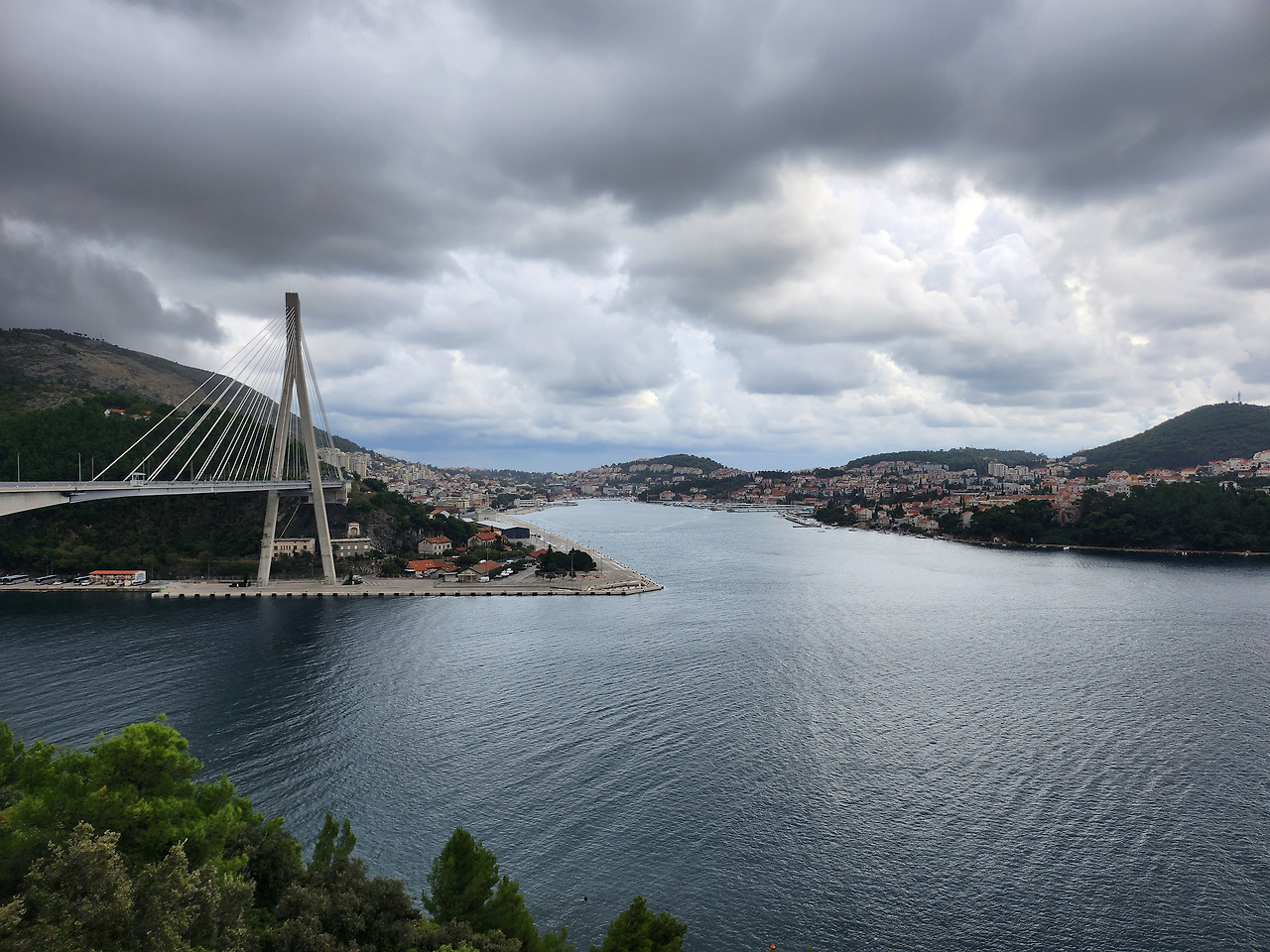 한쪽이 절벽이라 낮게 깔린 구름이 꽤나 잘 어울린다 | 프라뇨 투지만 다리를 건너기 직전에 보이는 두브로브니크의 전경