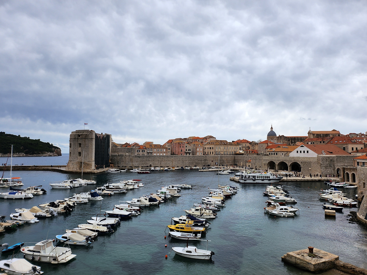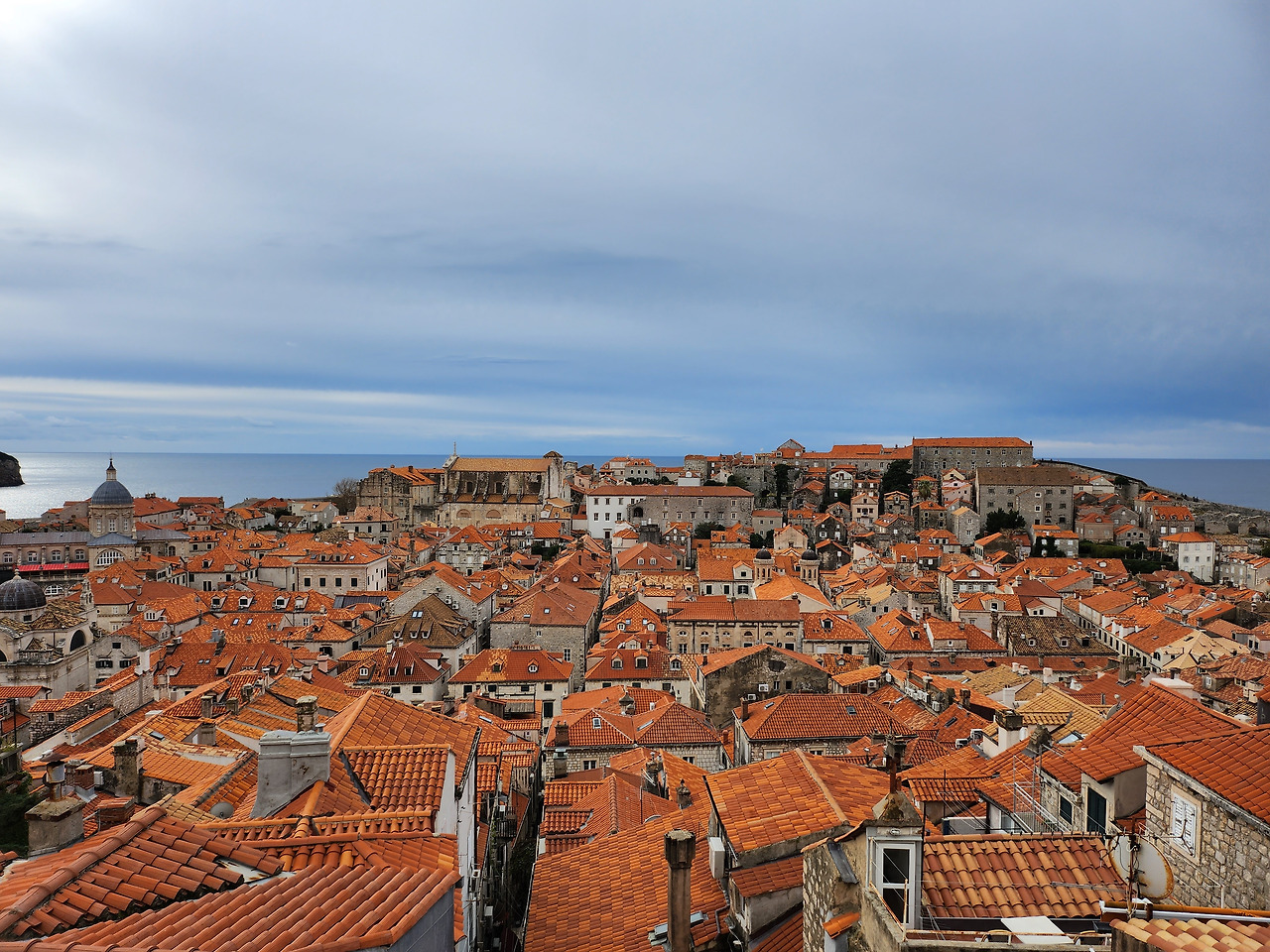 두브로브니크 성벽 입장 시간 9시에 맞춰 필레 관문을 통과했다. 24시간짜리 두브로브니크 패스로 하루 종일 다녔다. 웬만한 곳은 다 입장할 수 있고 대중교통도 이용 가능해서, 뇌 빼고 다니려면 이 패스를 구매하는 게 탁월한 선택이다. 다행히 이날은 날씨가 무난했다. 아주 화창하진 않았지만 하루 종일 비가 오지 않아서 좋았다. 먼저 성벽 위를 한 바퀴 쭉 돌았다. 이 긴 성벽과 내부 주택들을 그대로 보존해 둔 것이 대단하다 느껴졌다. 성벽 밖으로는 절벽과 지중해가, 안으로는 다홍색 지붕들이 보였다. 중간중간 총안과 감시탑 등도 남겨두어 정말 여기서 어떻게 병사들이 배치되었을지도 상상 가능했다.