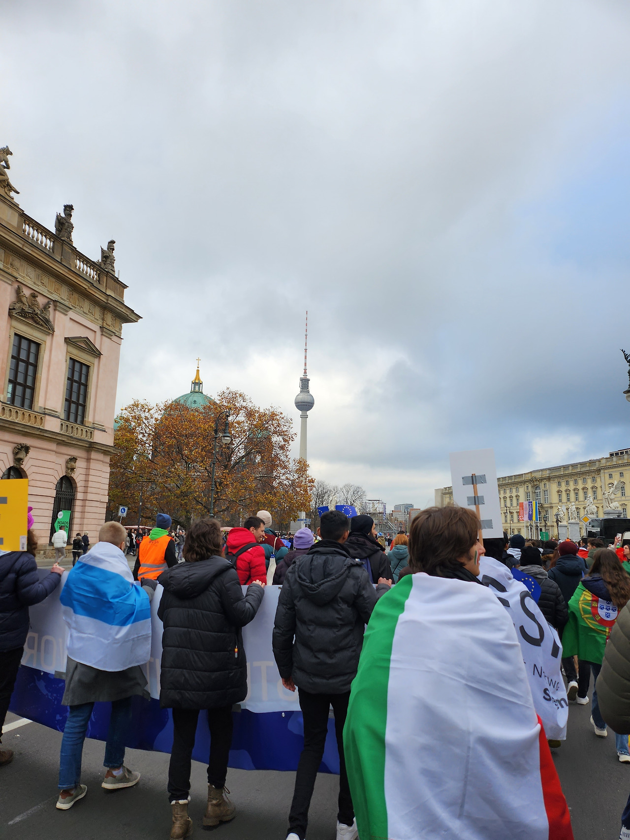 오전에는 다양성을 주제로 베를린 시내를 행진했다. Mehringplatz에서 출발하여 베를린 돔까지 깃발을 흔들며 걸었다. SM과 YN, Emi는 피곤하다 하여 혼자 가게 되었는데, 지하철 역에서 말레이시아 친구를 만나 외롭지 않게 갈 수 있었다. 사실 국적도 말레이시아인지 확실하지 않고 이름도 기억 안 나지만, 그의 복장은 아직도 기억에 남는다. 그는 살을 에는 날씨에도 아무 거적때기 하나 걸치지 않고 반팔 티셔츠 한 장만 입고 있었다—든든한 Jack Wolfskin 바람막이를 입고도 몸을 바르르 떨던 나와 대조되었다. 자기는 태어나서 이렇게 추운 날씨를 처음 경험해 본다며 온몸으로 경험해보고 싶어서 이렇게 입었다고 내게 말해주었다.