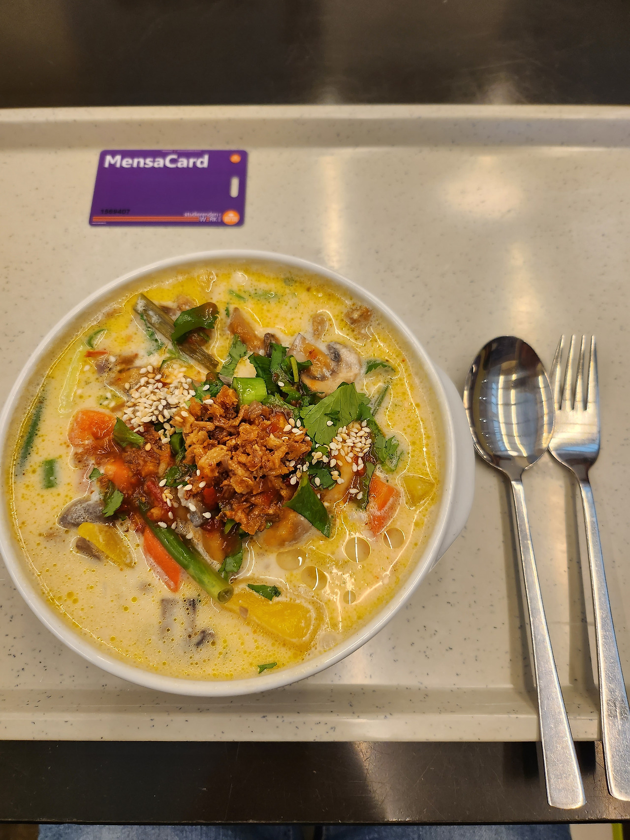 개회식은 오후에 TU Berlin에서 열렸다. 그전까지 2시간 정도 자유시간이 주어졌다. 어디를 들르기에는 애매한 시간이었다. 버스를 타고 20여 분 정도 시내를 뚫고 TUB 메인 캠퍼스에 바로 갔다. 일단 배가 고파 Mensa—독일에서는 학생 식당을 이렇게 부른다—에 가서 점심을 먼저 해결했다. 전체적인 분위기는 TUM의 Mensa와 비슷했다. Tom Kha Gai라는 6유로짜리—심지어 TUB 학생이라면 더 싸게 먹을 수 있었다—태국 음식을 사 먹었다. 따뜻한 국물을 먹는데 코코넛 맛이 나서 처음에는 뭐지 싶었다. 하지만 먹으면 먹을수록 맛있어져 그릇을 싹 비웠다. 추운 날씨에 속에 뜨신 게 들어가니 다시 힘이 났다. 남은 시간 동안 TUB 도서관을 구경하다 개회식 장소에 갔다.