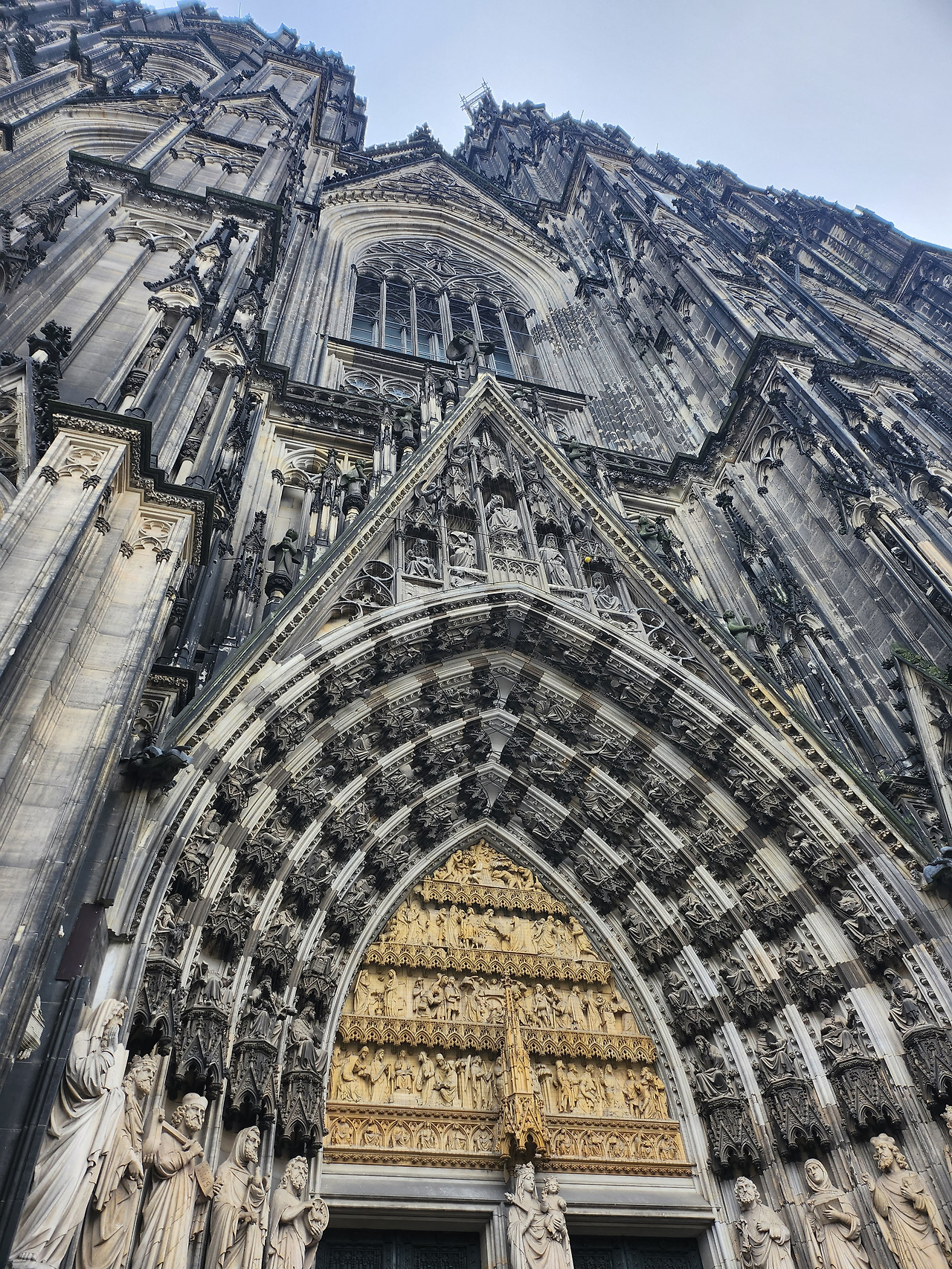 아침 일찍 일어나서 짐을 챙겨 중앙역으로 가 곧바로 쾰른으로 갔다. 1시간도 안 되어 쾰른 중앙역에 도착해서 라커에 짐을 맡기고 나왔다. 역 정문 바로 앞에 거대한 쾰른 대성당이 떡하니 서있었다. 크기도 큰데 외벽도 거뭇거뭇하니 더욱 장엄한 분위기를 연출하였다. 모두 감탄을 자아내며 가까이 가보았다. 꼭대기를 보려면 고개를 쳐들어야 할 정도로 높았고, 옆으로도 매우 길었다. 멀리서 봤을 때는 칙칙하게만 보였지만, 가까이 가니 섬세한 조각을 볼 수 있었다. 내부도 밖에서 본 것만큼 웅장했다. 크고 섬세한 스테인드글라스들과 금으로 된 동방 박사 유물함을 실컷 구경했다.
