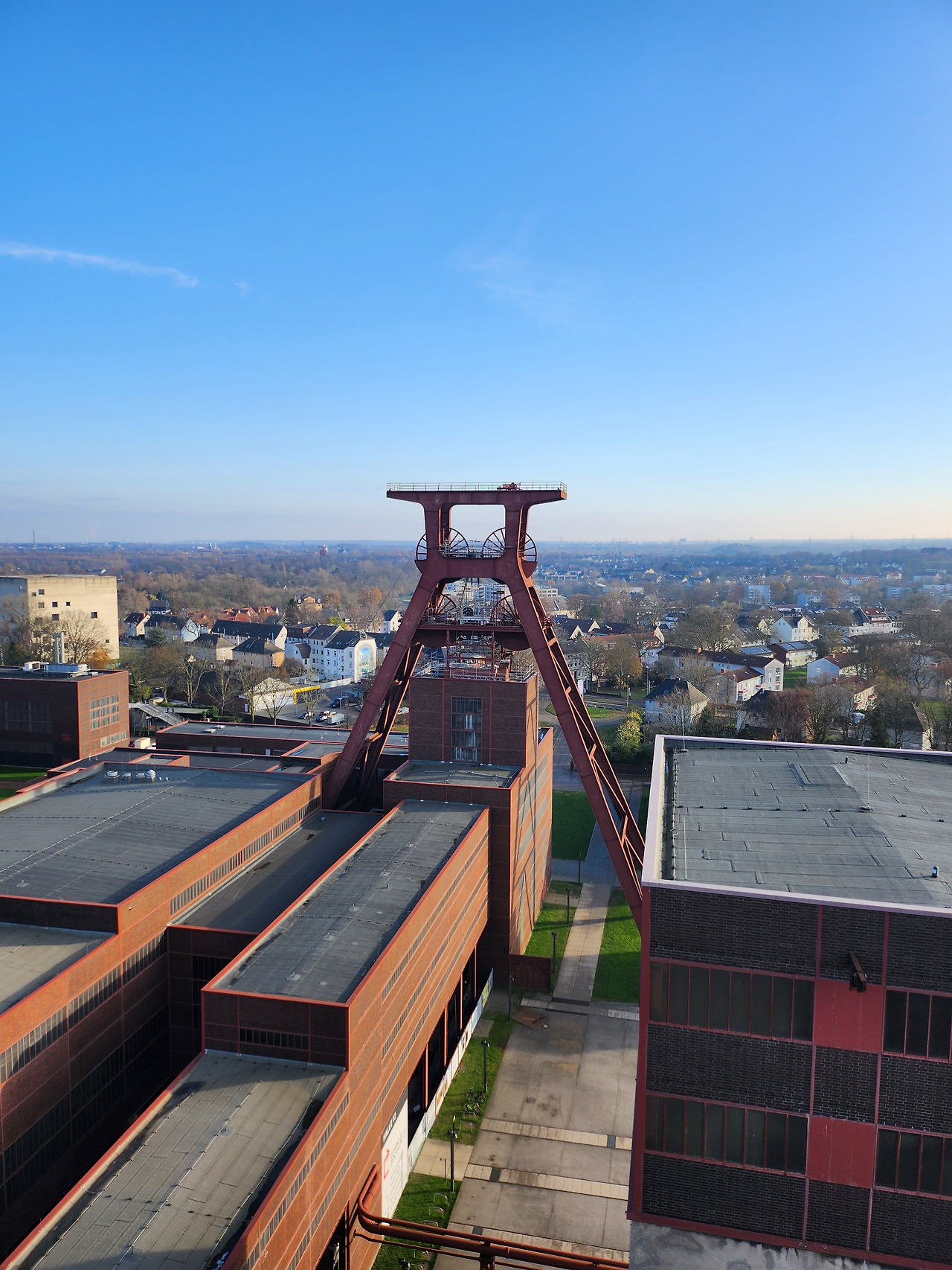 현재는 폐쇄된 탄광 산업단지라는 말을 들으니 썰렁하고 칙칙할 것이라고 예상되었다. 그러나 졸버레인 탄광 산업단지에 도착하여 바라보니 내 예상과는 많이 달랐다. '피읖'자 모양의 도르래(?) 건축물을 기준으로 깔끔한 검붉은색의 건물들이 각을 맞추어 이어져 있었다. 푸른 하늘과 대조되어 더욱 선명해 보였던 것 같다. 멋들어진 에스컬레이터를 한참 타고 올라가서 건물로 들어갔다. 깔끔한 외벽과는 분위기가 사뭇 달랐다. 그렇다고 더럽거나 혼잡한 것은 아니고, 과거에 사용했던 녹슨 기계들과 파이프들이 남겨져 있어서 그렇게 느꼈다. 이것들을 따로 떼어내어 유리관 안에 전시해두지 않고 그 위치 그대로 남겨두어 실감 났다. 표를 끊고 이곳저곳 둘러보았다. 이곳의 역사에 대한 전시관도 있었지만, 별로 관련 없는 내용들이 더 많았던 것 같다—어떤 전시관은 평범한 박물관 같았다. 이 박물관에 특이한 점이 하나 있는데, 층수가 1층, 2층 이렇게 되어 있지 않고 높이로 되어 있었다. 나처럼 아무것도 모르는 관람객 입장에서는 헷갈리기만 했다. 대충 둘러보다 옥상에 가서 구경한 산업단지 전경이 가장 멋있었다. 역시 '문명 6'에서 불가사의인 루브르 박물관이나 빅 벤 같이 유명한 것들은 직접 봐도 별 감흥이 없었는데, 이 루르 밸리의 '피읖'자 건축물은 왜인지 모르게 볼 때마다 벅차올랐다.
