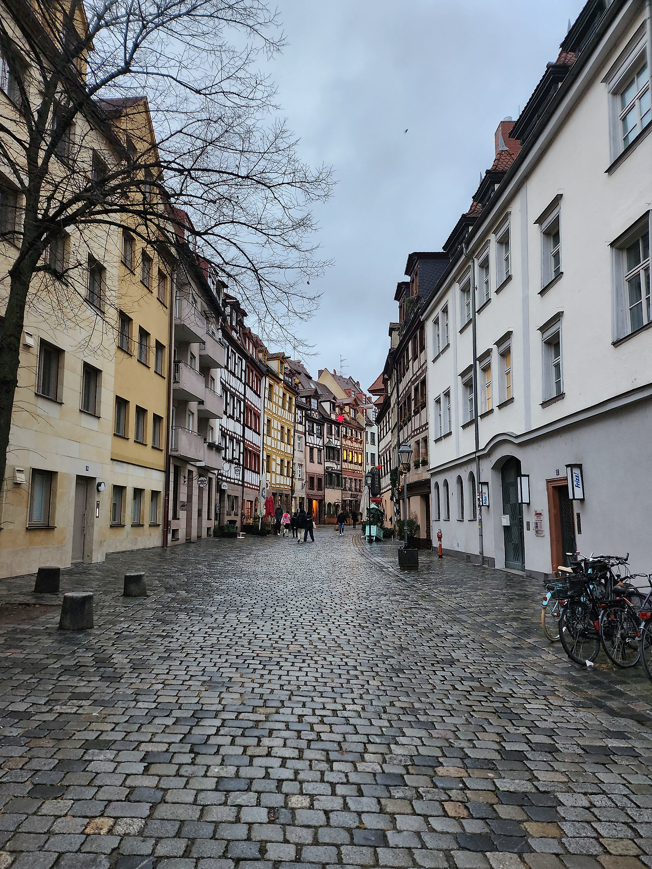 7시에 일어나서 출발했지만 정오가 넘어서야 뉘른베르크에 도착하였다. 돈 없는 학생에게 IC는 사치라 내 분수에 맞는 RE를 선택한 데에 다른 결과이다. 중앙역에서 전날 구한 동행 GR 누나와 만났다. 이 누나도 프랑스 교환학생이어서 편했다. 프랑스는 벌써 종강을 해, 여행을 조금 다니다 한 달 안에 귀국할 예정이라고 했다. 당시 나는 아직 종강이 한 달 넘게 남았어서 엄청 부러워한 한편, 일찍 귀국할 계획이라는 점에는 다소 아쉬웠다. 나라면 유럽을 최대한 즐기며 귀국을 늦추었을 텐데. 이런저런 교환학생 이야기를 하면서, 중앙역이 있는 페그니츠 강의 남쪽에서 북쪽으로 쭉 걸어 올라갔다. 오전에 비가 왔었던 터라 날씨도 흐리고 분위기도 독일의 흔히 볼 수 있는 마을 분위기여서 별 감흥이 없었다. Fleischbrücke를 건너 성 제발트 교회까지 갔다. 나는 뉘른베르크성까지 올라가서 구경하고 싶었으나, GR 누나는 피곤해서 카페에 있겠다고 했다. 그렇게 잠시 흩어졌다가 1시간 뒤에 만나기로 했다.