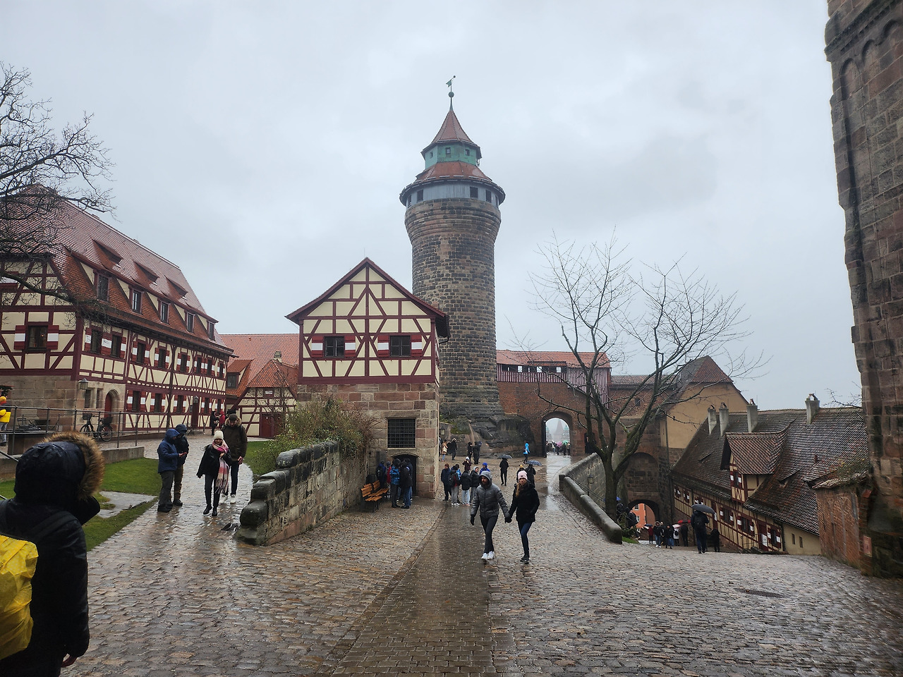 뉘른베르크성에 도달하려면 꽤나 경사진 언덕을 올라야 했다. 호엔잘츠부르크 성 등 여타 성들과 비슷하게도 성 내부에는 과거 마을의 모습이 그대로 남아 있었다. 주택들도 생긴 건 비슷했는데, 유독 찍찍 그어진 직선들이 눈에 띄었다. 매표소에 들어가서 가장 싼 표를 하나 끊었다. 우물과 전망대를 관람할 수 있었다. 먼저 Deep Well부터 갔다. 현장체험학습을 온 학생들 때문에 시끌벅적해서 해설사의 설명을 제대로 들을 수 없었다. 엄청 깊다는 것을 보여주기 위해 물 몇 방울을 또르르 따랐는데, 대략 5초 정도 뒤에야 바닥에 떨어졌다는 소리가 났다. 이후 Sinwell Tower에 올라가서—다른 전망대들에 비하면 쉽게 올라갈 수 있다—흐린 뉘른베르크의 전경을 감상하고 내려왔다.