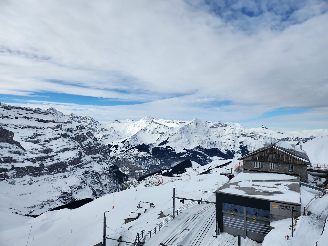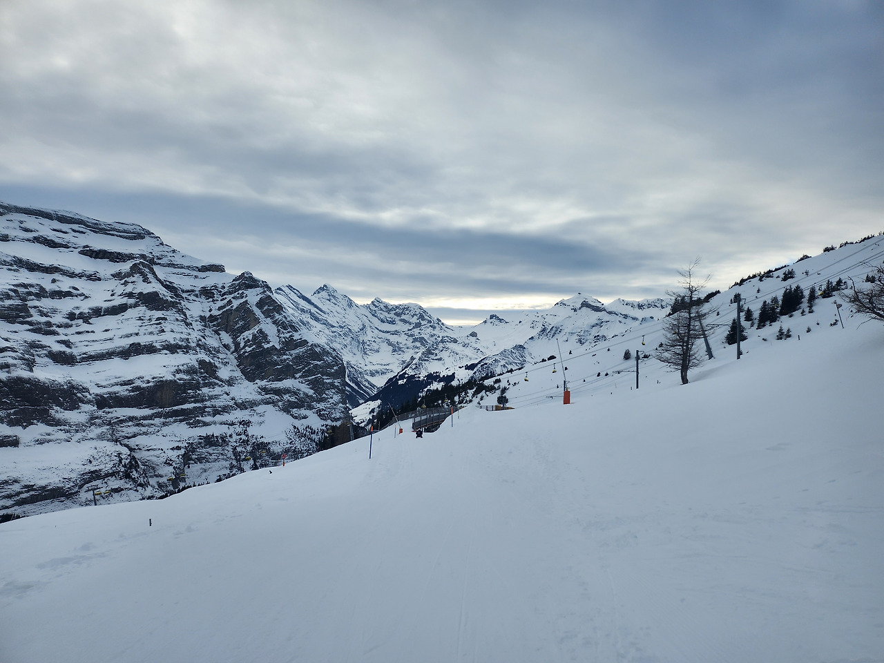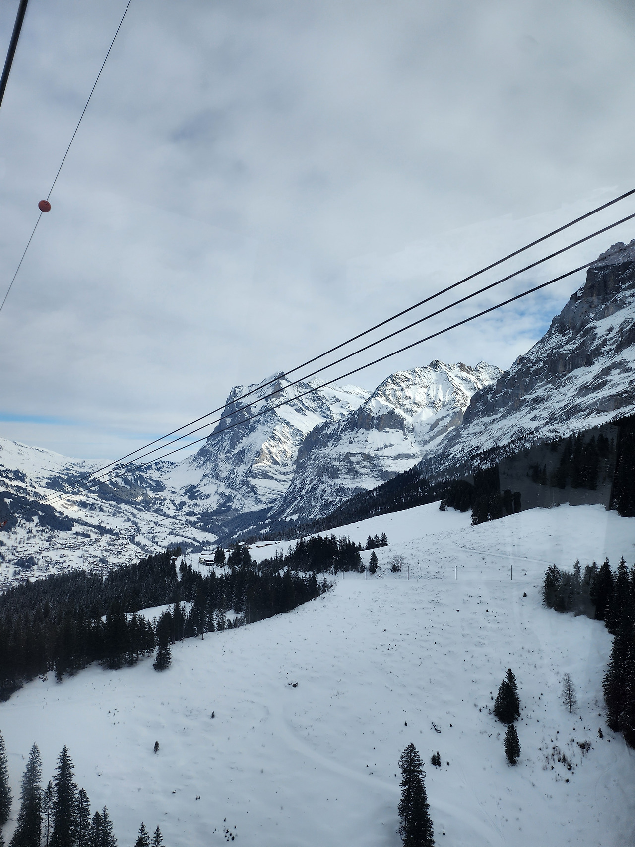예상보다 시간이 많이 남아 멘리헨으로 갔다. 10인승 곤돌라에 혼자 타게 되었다. 너무 심심해서 아름다운 풍경에 맞서 당시 빠져있던 김동률 노래를 마음껏 불러보았다. 피르스트는 절벽에서 바라보는 알프스의 민모습이 인상적이었다면, 멘리헨은 하얀 들판 한가운데에서 360도가 알프스로 둘러싸여 있는 기분을 주었다. 그 많은 절경 중에서도 가장 멋있다고 알려진 왕관 전망대로 올라갔다. 오르막길이 가파른 데에다가, 길이 너무 미끄럽기까지 해서 오르는 데 제법 애먹었다. 그래도 끝까지 올라 일자로 정렬된 아이거, 묀히, 융프라우 3형제가 반겨주었다. 구름이 꼭대기에 살포시 앉아있었지만, 그 실루엣을 충분히 볼 수 있었다—이 글 커버 이미지가 바로 그 융프라우 3봉이다. 눈길을 걸어 올라간 고생에 대해 충분히 보상받고 천천히 내려왔다. 넘어지진 않았으나 깊숙한 눈밭에 발을 잘못 디뎌 또 신발이 젖어 버렸다. 이후 벵겐과 라우트브루넨을 슬쩍 훑어보고 숙소로 돌아왔다.