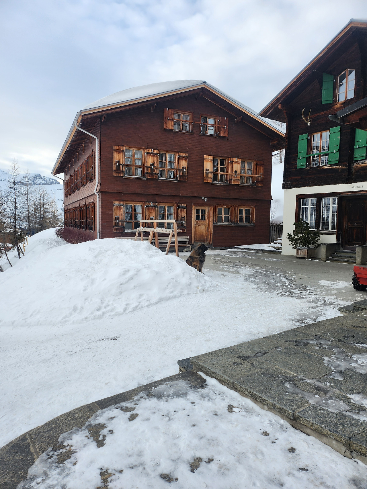 스키길을 따라 걸으며 바라본 알프스의 모습 | 벵겐알프 역 앞을 지키고 있는 개