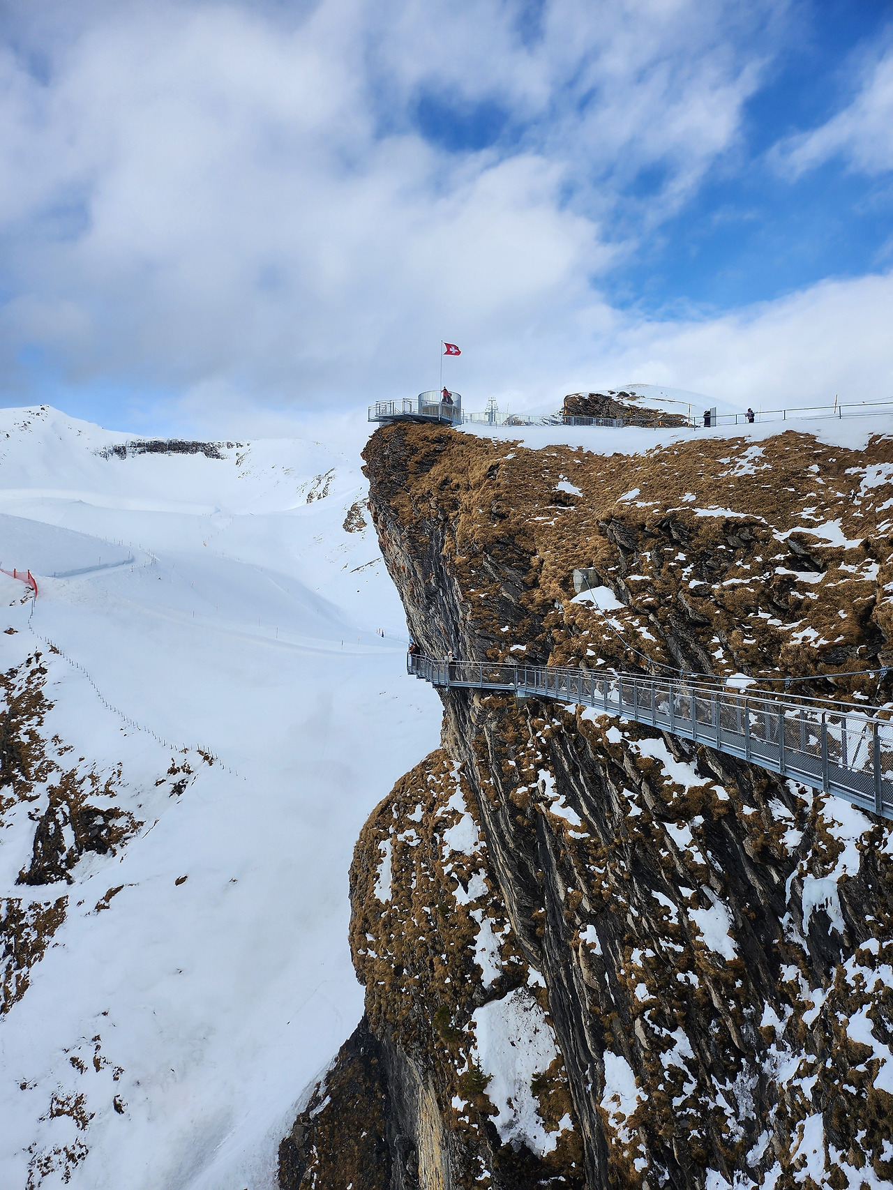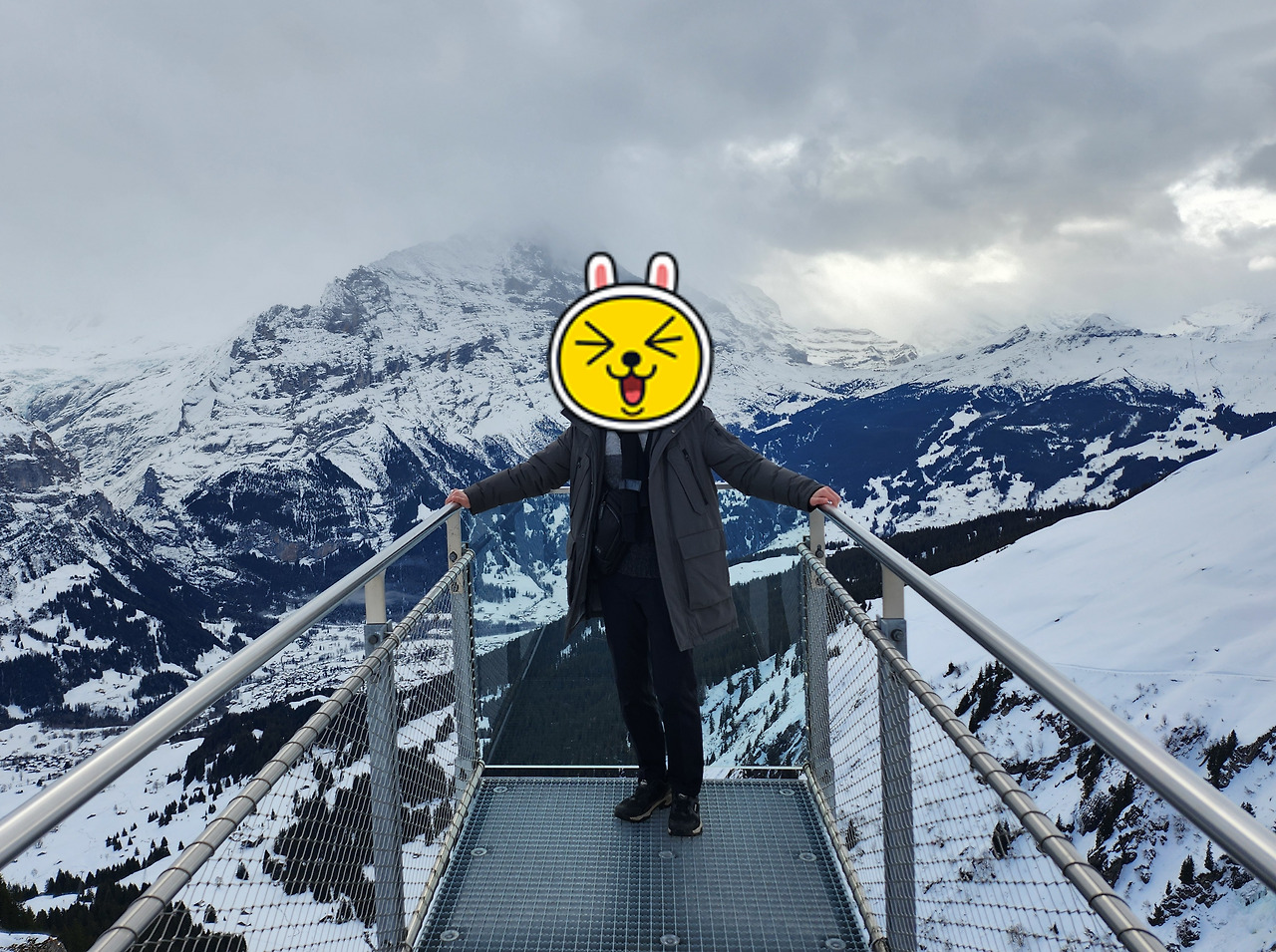 인터라켄으로 돌아오니 다행히 날은 개어 있었다. 계획대로 피르스트로 향했다. 그린델발트에 있을 때까지만 해도 다시 날씨가 흐려지는 게 아닐까 걱정되었다. 하지만 점점 올라갈수록 구름에 가려져 있던 산꼭대기들이 모습을 드러냈다. 이윽고 정상에서는 따뜻한 햇살을 받으며 설산들을 선명히 볼 수 있었다. 조금만 절벽을 타고 쭉 이어진 Cliff walk 위를 걷고 난간 전망대에서 산맥 속에 들어가 있는 듯한 사진도 찍었다. VIP 패스에 무료 액티비티가 하나 포함되어 있어 사람들이 가장 많이 이용하던 글라이더를 타보았다. 엎드린 채로 매달린 짚라인이었는데, 설산을 위에서 볼 수 있어 신기했으나 스릴은 없었다.