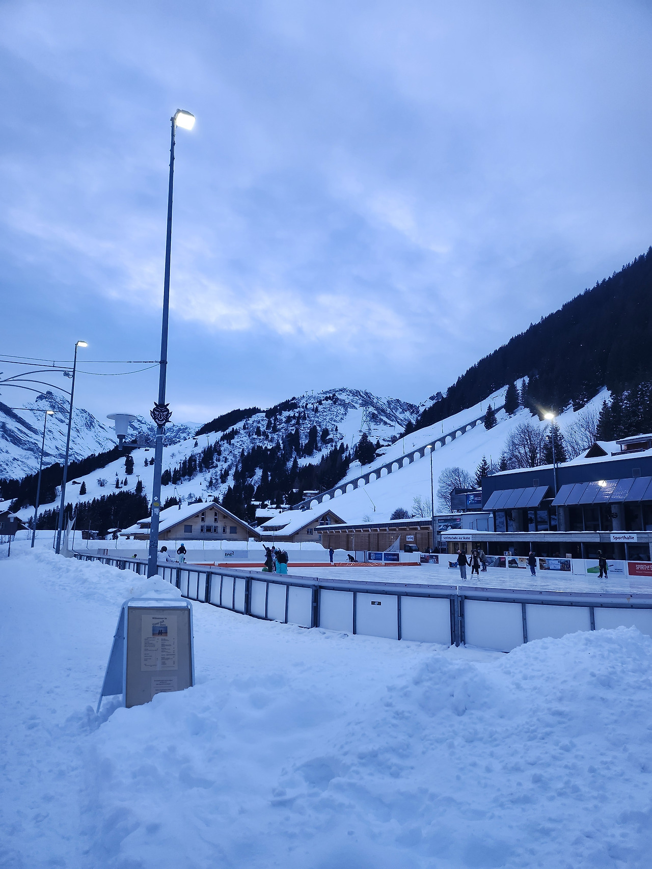 기차에서 내리니 어느새 해가 슬슬 지기 시작했다. 뮈렌은 참으로 고요하고 작은 마을이었다. 둘러보기도 전부터 깊은 산속의 평화로운 느낌이 마음에 들었다. 천천히 걸으며 마을을 한 바퀴 돌았다. 배고파서 마트에서 바나나 한 송이를 사 먹으며, 개를 산책하는 주민들, 아이스링크에서 스케이트를 타는 아이들, 하나둘씩 전등이 켜지는 목조 주택들을 구경했다. 동네가 너무 작아 30분 만에 한 바퀴를 다 돌았다. 기차가 오기까지 한참 남았는데, 마을에서 딱히 더 할 것이 없어서 다음 역까지 걸어갔다. 30분 남짓 절벽길을 따라 걸었다. 해가 완전히 사라졌을 때 마침 빈터렉 역이 보였다. 거의 아무도 없는 기차를 타고 인터라켄 무사히 동역으로 돌아왔다.