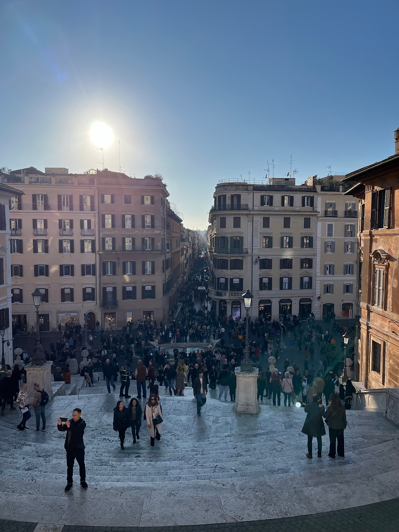 당을 충전하니 기분이 좋아졌다. 느긋하게 트레비 분수에 갔는데, 분수 앞은 사람들로 꽉 차 있었다. 동전을 던지기조차 힘들 정도였지만, 우리 모두 기어코 동전을 던졌다. 잠시 자리를 잡아 앉아 멍하니 분수를—시야에 사람이 차지하는 면적이 훨씬 크긴 했다—구경하다 이동했다. 스페인 광장에 가는 길에 가이드가 알려준 유명한 트러플 전문점 La Bottega del Tartufo에 잠깐 들렀다. 교환학생을 온 이후 파스타를 자주 해 먹게 되었으니, 앞으로 트러플오일파스타를 자주 해 먹고 싶은 마음이 생겨 화이트 트러플 오일을 한 병 샀다. 스페인 광장에 도착해서는 계단을 천천히 오르며 사진을 찍었다. 중간중간 앉아있다 경찰의 지적에 일어나는 사람들을 심심치 않게 볼 수 있었다. 계단을 올라 사람들로 빼곡한 광장을 구경하다 숙소로 되돌아왔다.
