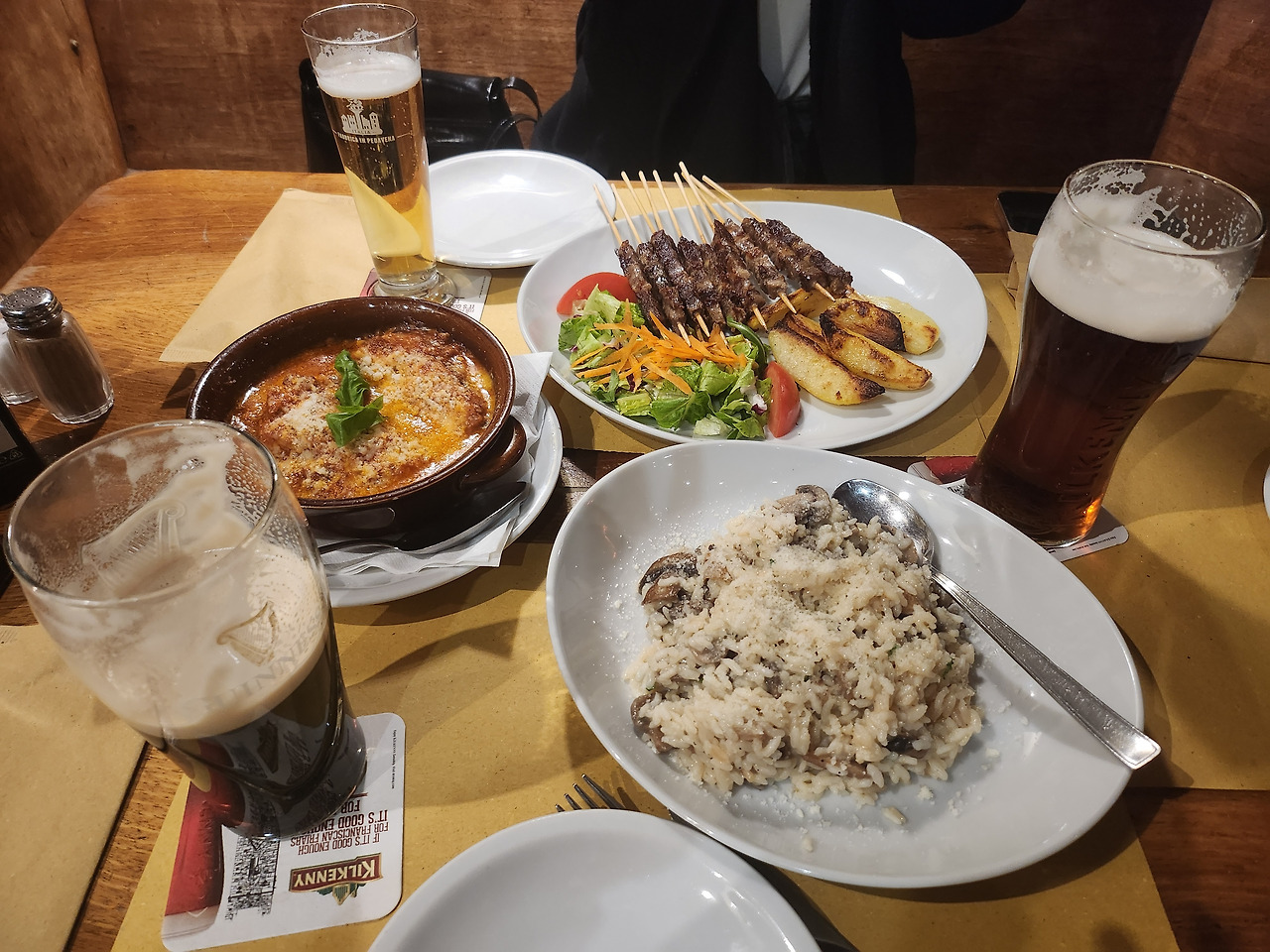 잠깐 쉬다가 아직 배가 덜 고파 산타 마리아 마조레 대성전에 들르기로 했다. 무슨 행사가 진행되길래—엄숙했던 분위기로 보아 장례식으로 사료된다—배고파질 때까지 감상했다. 저녁은 숙소 바로 옆 Birreria Marconi에서 먹었다. 구글맵 리뷰에서 봤던 가성비가 매우 뛰어난 식당이었다. 라자냐와 버섯 리조또, 양꼬치를 안주로 기네스를 마셨다. 탭에서 따른 기네스는 정말 부드러워 감탄하면서 마셨다. 음식들도 모두 괜찮았는데, 특히 버섯 리조또가 정말 맛있었다.