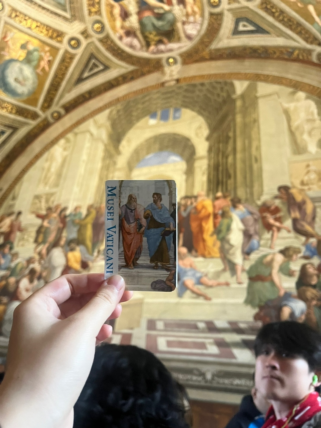 8시 40분에 시작되는 바티칸 투어 때문에 7시에 일어나서 급히 준비했다. 바티칸이라는 나름의 국가에 입국한 뒤, 우선 미술관 로비에서 1시간 정도는 앉아서 설명을 들었다. 시스티나 성당 안에서는 가이드의 설명이 금지되어 있기—정숙해야 하며 사진 촬영도 금지된 공간이다—때문이었다. '천장화'와 '최후의 심판'에 대한 내용이 주를 이루었는데, 미술에 관심 없는 나의 흥미를 끌 정도로 재밌는 지식을 많이 얻을 수 있었다. 설명이 끝나고 미술관과 정원을 돌아다니며 몇몇 작품들에 대한 설명도 들었다. 내가 알고 있던 '라오콘 군상'과 '예수의 매장'을 직접 보니 더 깊이 빠져 감상했다. 가장 인상 깊었던 것은 각 성자들의 도상이었다. 성 베드로는 두 열쇠, 사도 바울은 큰 칼, 성 프란치스코는 못자국 등 이제는 기독교 그림을 감상할 때 아는 척을 할 수 있는 아주 유용한 지식이었다. 이후 시스티나 성당에서 '천장화'를 감상하며 생긴 목의 뻐근함으로 미켈란젤로의 생고생에 경의를 표했다.