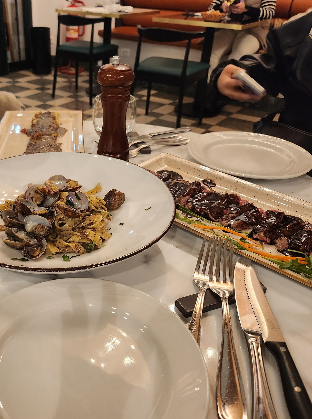 3시간 남짓 버스를 타고 로마로 올라왔다. 그동안 가이드가 여러 맛집들을 소개해 주었는데, 그중 Osteria Emasi에 갔다. 트러플 봉골레 파스타, 트러플 라비올리, 발사믹 스테이크를 시켜 먹었다. 조개 향이 트러플 향을 잡아먹은 것 빼고는 대체로 만족스러웠다. 나쁘지 않은 가격에 고급 요리들을 맛볼 수 있어서 좋았다.