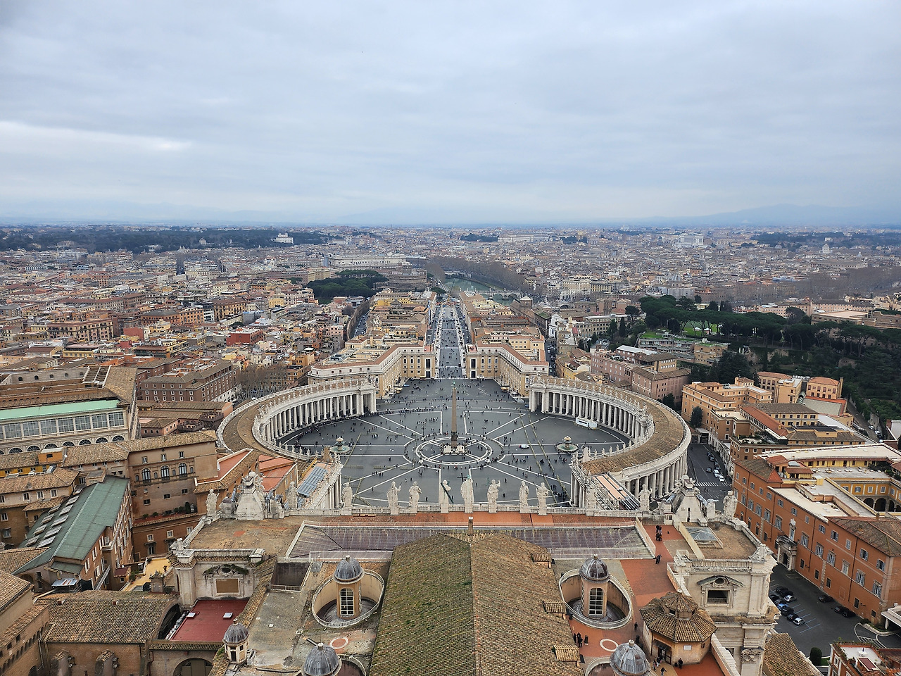 동생이 찍은 아테네 학당 시그니처 사진 | 성 베드로 성당 꼭대기에서 바라본 성 베드로 광장 전경