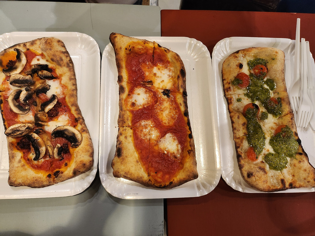 피렌체로 돌아와 가이드와 작별한 뒤 Mangia Pizza라는 식당에 가서 피자로 저녁을 해결했다. 특이한 모양과 푸짐한 토핑의 1인 피자가 무척 마음에 들었다. 먹기도 편하고 가격도 저렴했다. 크기는 작은데 토핑의 양은 로마에서 먹었던 둥그런 피자와 비슷했다. 너무 맛있게 먹어서 추가로 한 판을 포장해 왔다. 이 피자와 맥주가 아시안컵 8강에 힘겹게 진출한 우리나라 축구 대표팀의 답답함을 해소시켜 주었다.