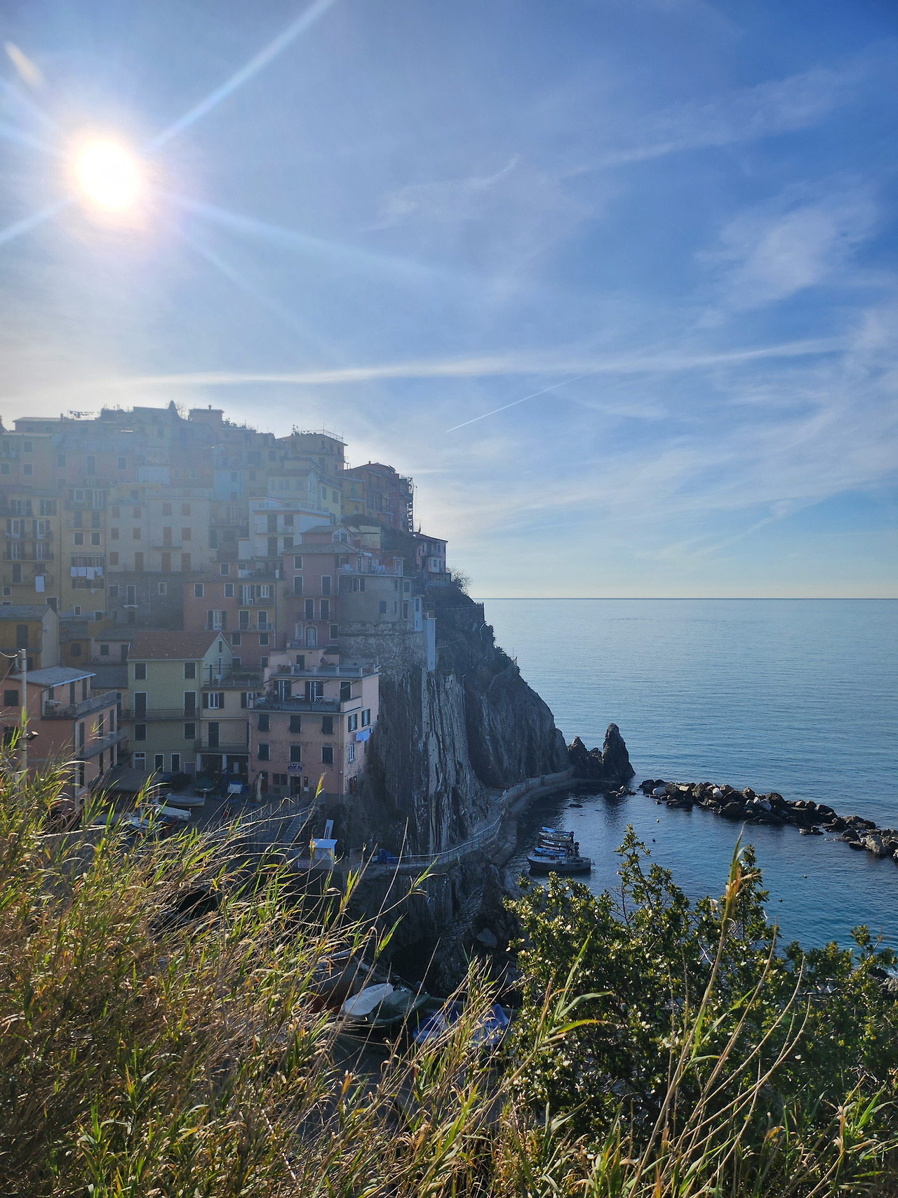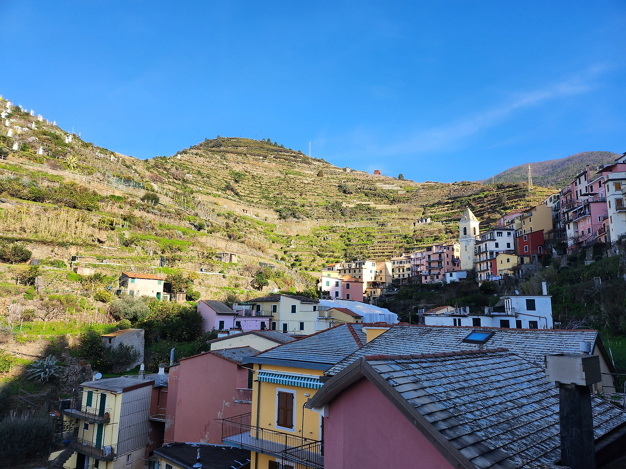 우리는 라스페치아에서 기차를 타고 친퀘 테레로 이동했다. 친퀘 테레란 다섯 개의 마을이라는 뜻이다. 하루에 다섯 마을을 모두 둘러볼 수는 없기에 두 마을만 들르게 되었다. 우선 두 번째 마을 마나롤라로 갔다. 친퀘 테레라고 검색하면 가장 많이 나오는 그 전경을 바로 이 마을이 담고 있다. 오전이라—보통 피사를 먼저 가지만 일기예보 때문에 일정을 바꾸었다—역광인 점이 다소 아쉬웠다. 다채로운 파스텔 톤의 주택들을 햇빛이 삼켜 버렸다. 그래도 가이드와 함께 역광이 아닌 곳을 열심히 찾아 예쁜 사진들을 건질 수 있었다. 사진에 온전히 담기진 않았지만, 바다와 계단식 농장 사이에 자리잡은 알록달록한 마을은 정말 아름다웠다.