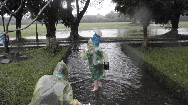 모습을 보고 빗속에 여행객들은 까르르 자지러진다.