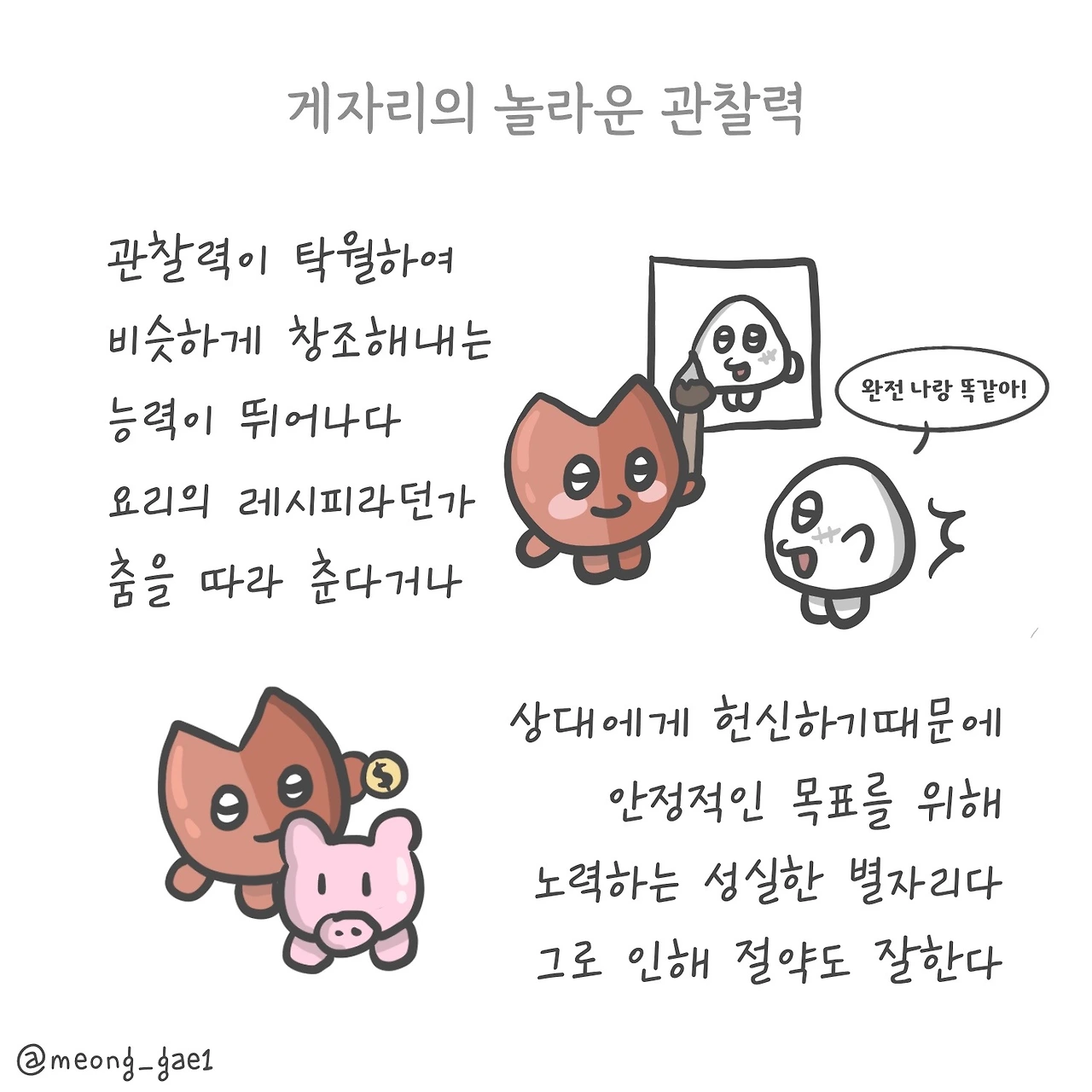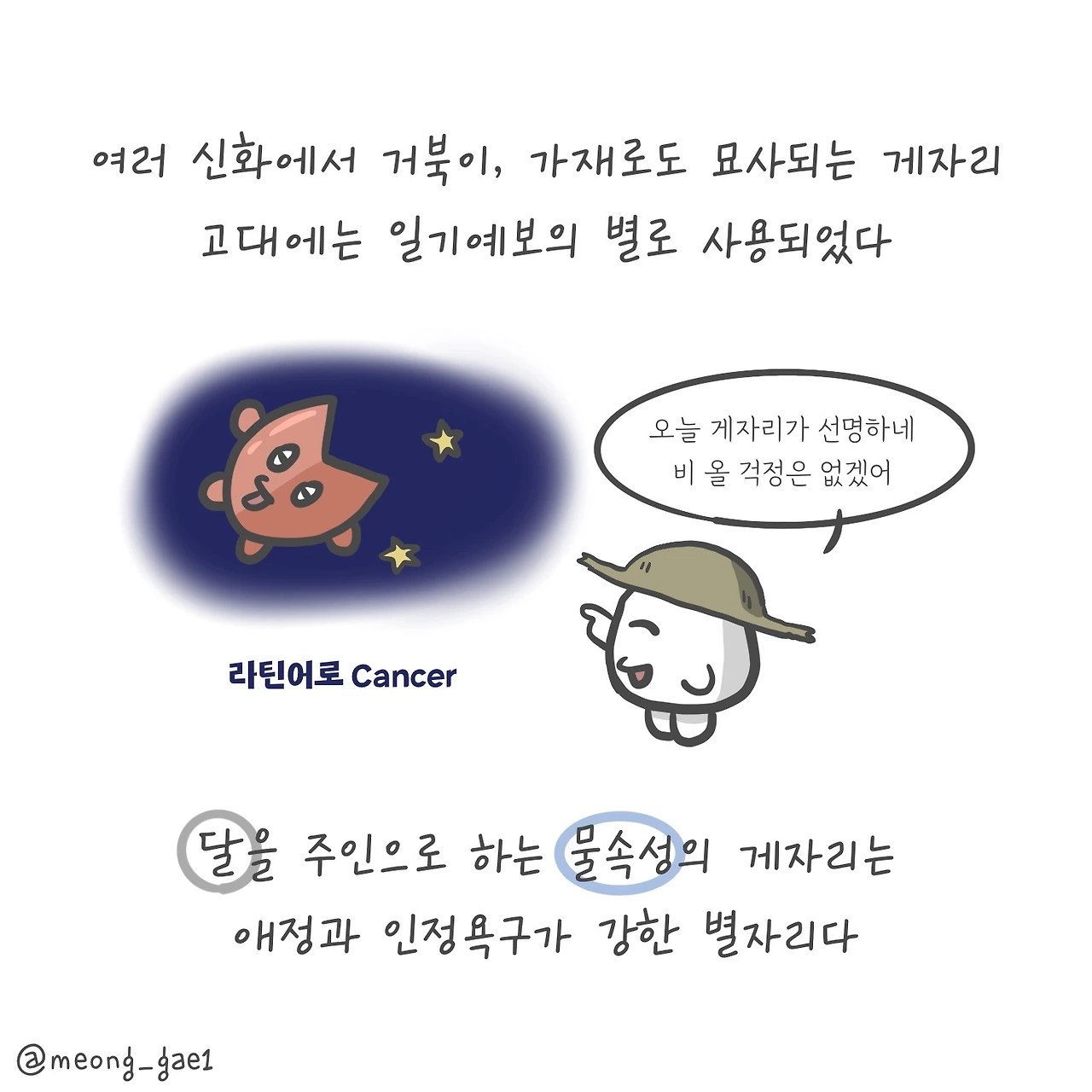 정말 사랑스러운 별자리죠? 이유는 모르겠지만 제 주변엔 게자리가 정말 많은데