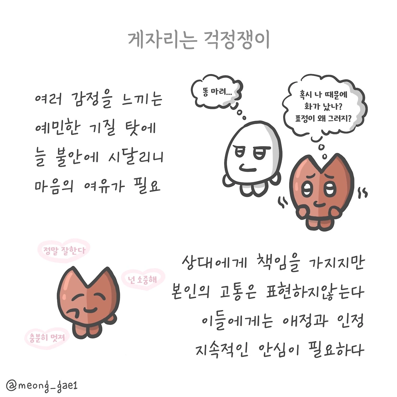 하지만 늘 걱정이 많아서 타인과 자신을 비교하며 질투를 하기도 하고 열등감에 시달리기도 해요.