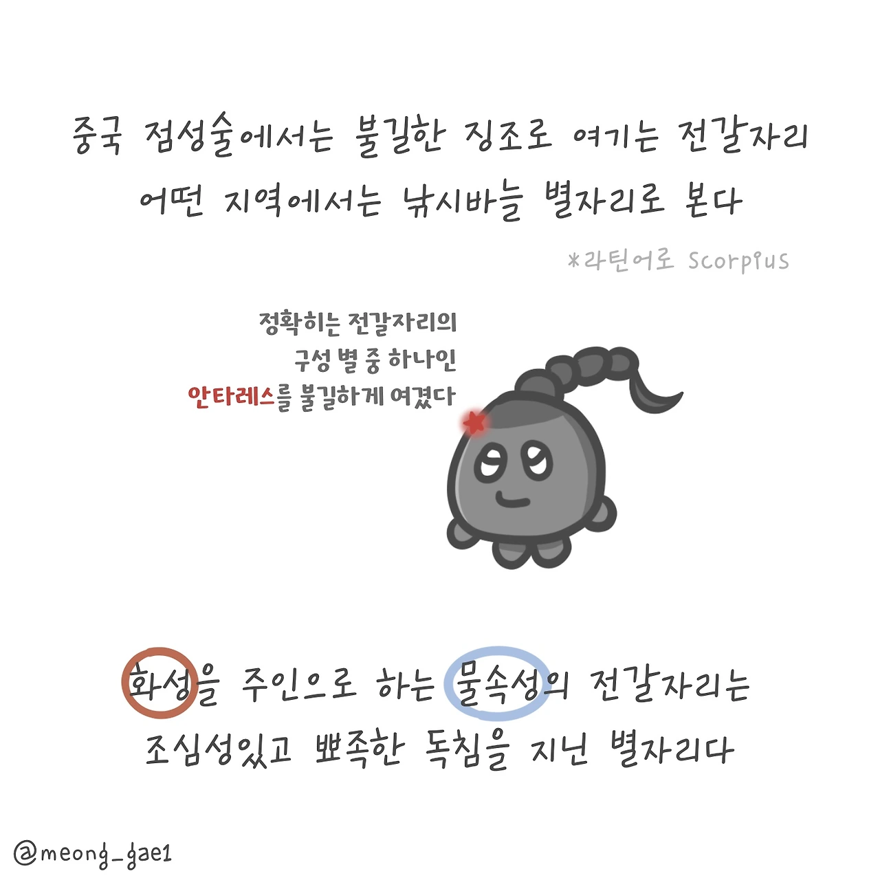 안타레스는 전갈자리에 구성 별 중 하나로 전갈모양의 머리 부분에 위치한다고 해요