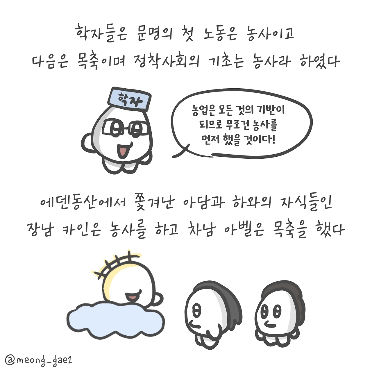 야훼가 명령하기를 장남 카인에게는 농사를 하라,