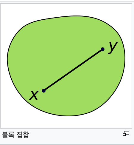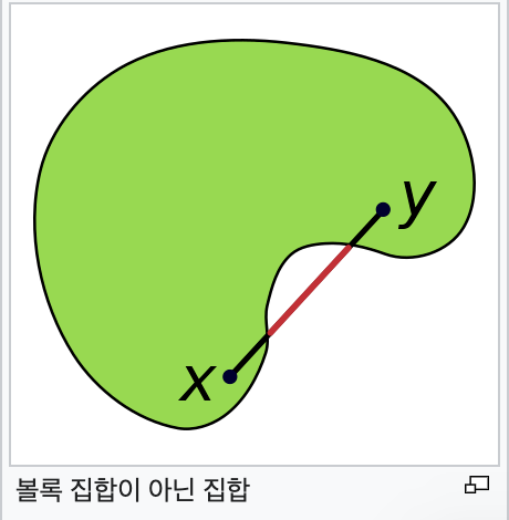 볼록 집합(convex set)은 임의의 두 점을 잇는 선분을 포함하는, 유클리드 공간의 부분 집합이다.