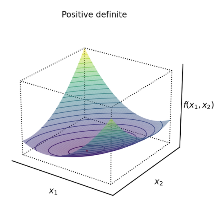 - 헤시안 행렬의 고윳값이 모두 양수이면, quadratic form은 positive definite이고, 임계점은 극소값이다. (고유값에 0이 섞여있다면 positive semi-definite 이 되고, 임계점은 local minima 혹은 saddle point가 된다)