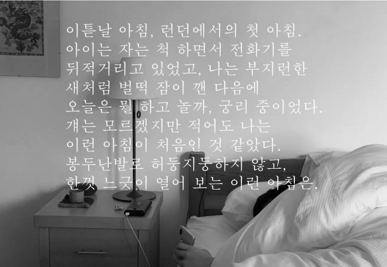 런던의 아침 공기가 아직 어색해서 나는 얼른 친해지려고 베란다 의자 위에 한참 동안이나