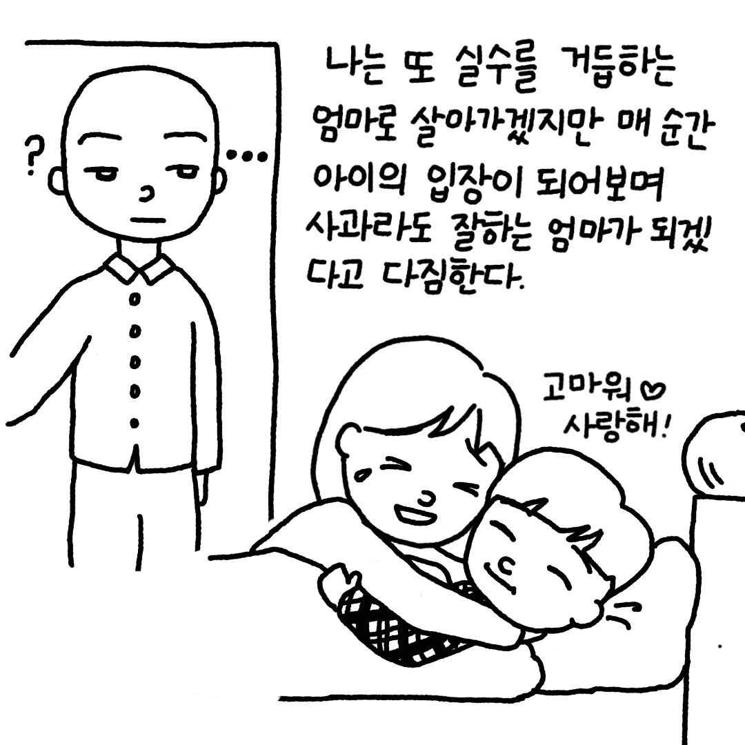 오늘은 며칠 전 있었던 사소한 에피소드를 담아보았습니다. 아이들은 늘 우리 어른보다 낫고 배울 점이 많죠. 늘 나를 용서해주고 조건없이 사랑해주는 우리아이를 위해 오늘도 역지사지의 자세로 육아에 임해봅니다.