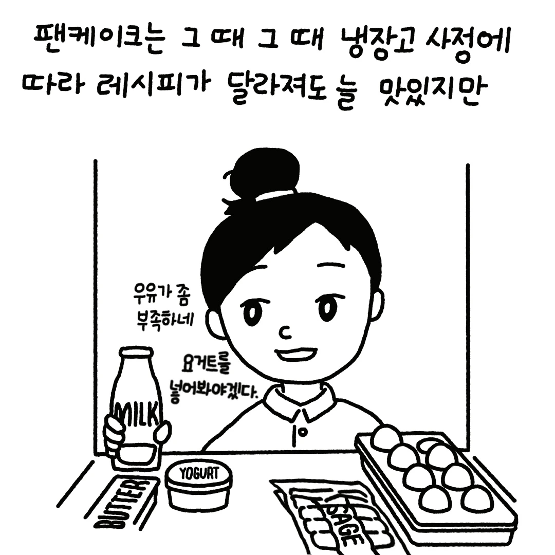 요 #통밀가루 #팬케이크 레시피는 기존에 가지고 있던 레시피에서 우유가 부족해, 요거트를 대체해 넣었던 것이 오히려 더 맛있는 팬케이크가 된 경우입니다. 요거트가 없으시다면 버터밀크(우유75g+식초1큰술)로 또 대체 해 보셔도 좋을거에요. 반죽에 바나나 혹은 블루베리, 초콜릿 같은 것을 넣어봐도 좋고요! 홈메이드 팬케이크의 변신은 무궁무진하답니다.