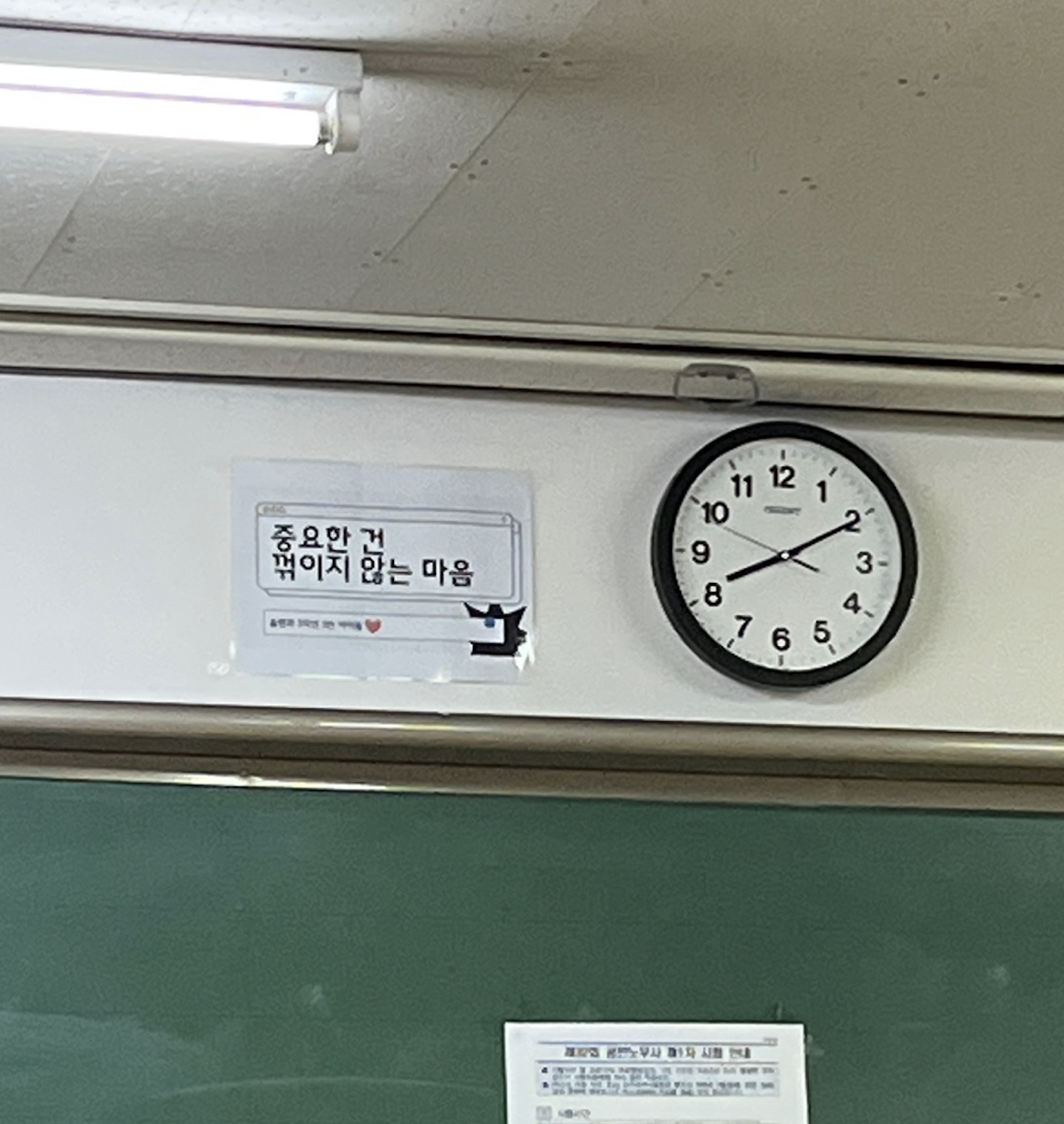이런 시험을 볼 때마다 중학교를 가게되는데 늘 기분이 이상하다. 어렸을 때 익숙하게 보던 그런 교실이며 복도며 향수에 졌어든다. 시험장에 들어서니, 이게 뭔가. 급훈마저 이렇게 멋있을 일이냐고.