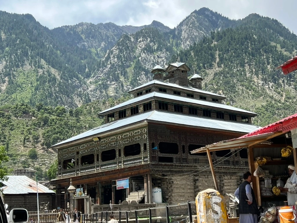 캠핑장으로 향하는 마지막 마을에 들어서자, 많은 사람들이 거리에서 이것저것 물품을 구매하고 있었고, 그곳에서는 캠핑장으로 향해 갈 때 일반 자가용은 진입하기가 힘듦으로, 렌트를 해서 가거나 차를 바꿔 타서 산 쪽으로 올라가게 된다. 특히 인상 깊었던 목조건물의 모스크(이슬람식 성원)가 매우 인상 깊었다. 나무로 지었는데 백년을 굳건히 지키고 있다니 놀랍지 않은가. 관리가 잘 되고있는 우리나라랑 비교해서 생각하면 안된다. 이곳은 파키스탄 아닌가. 관리보다는 방치를 많이 하는 곳이다.