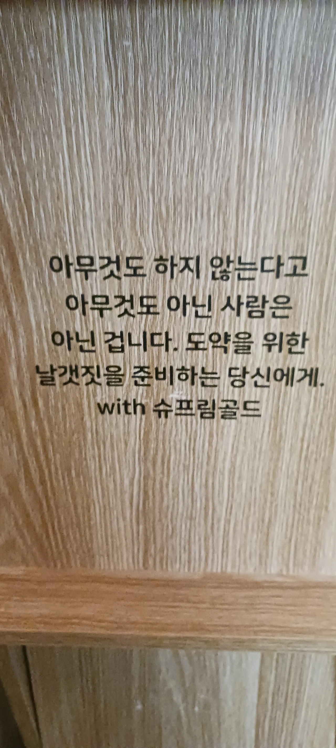 아무것도 하지 않는다고 아무것도 아닌 사람은 아닐 겁니다. 도약을 위한 날갯짓을 준비하는 당신에게.... 였다.