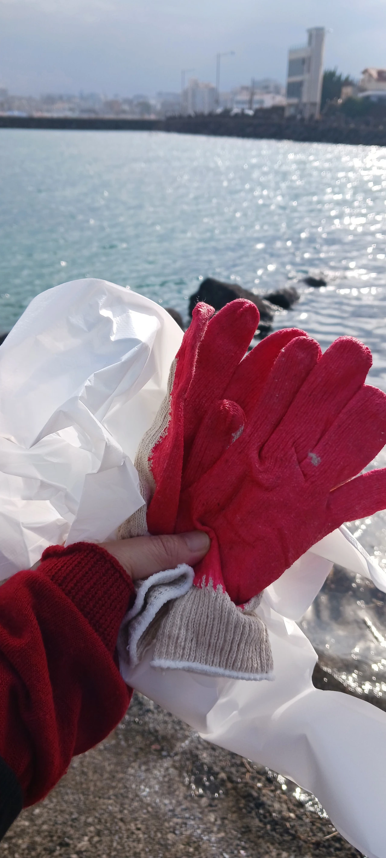 삼양동의 벌랑포구. 1시간 넘게 허리를 굽혀 쓰레기를 줍는 일은 고단했다. 대강대강 줍는데도 제법 쓰레기가 봉지 가득.