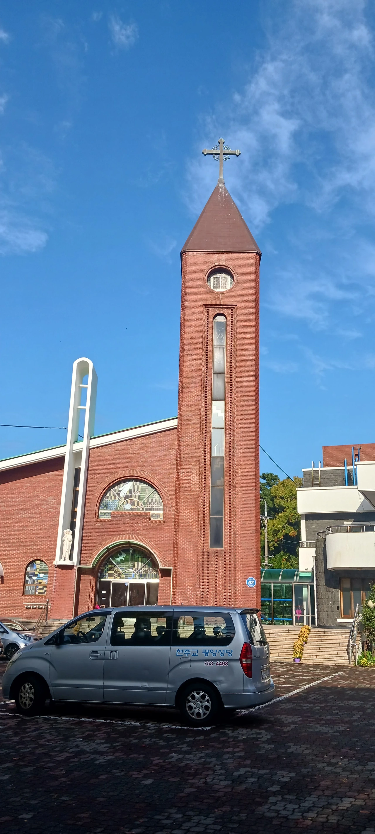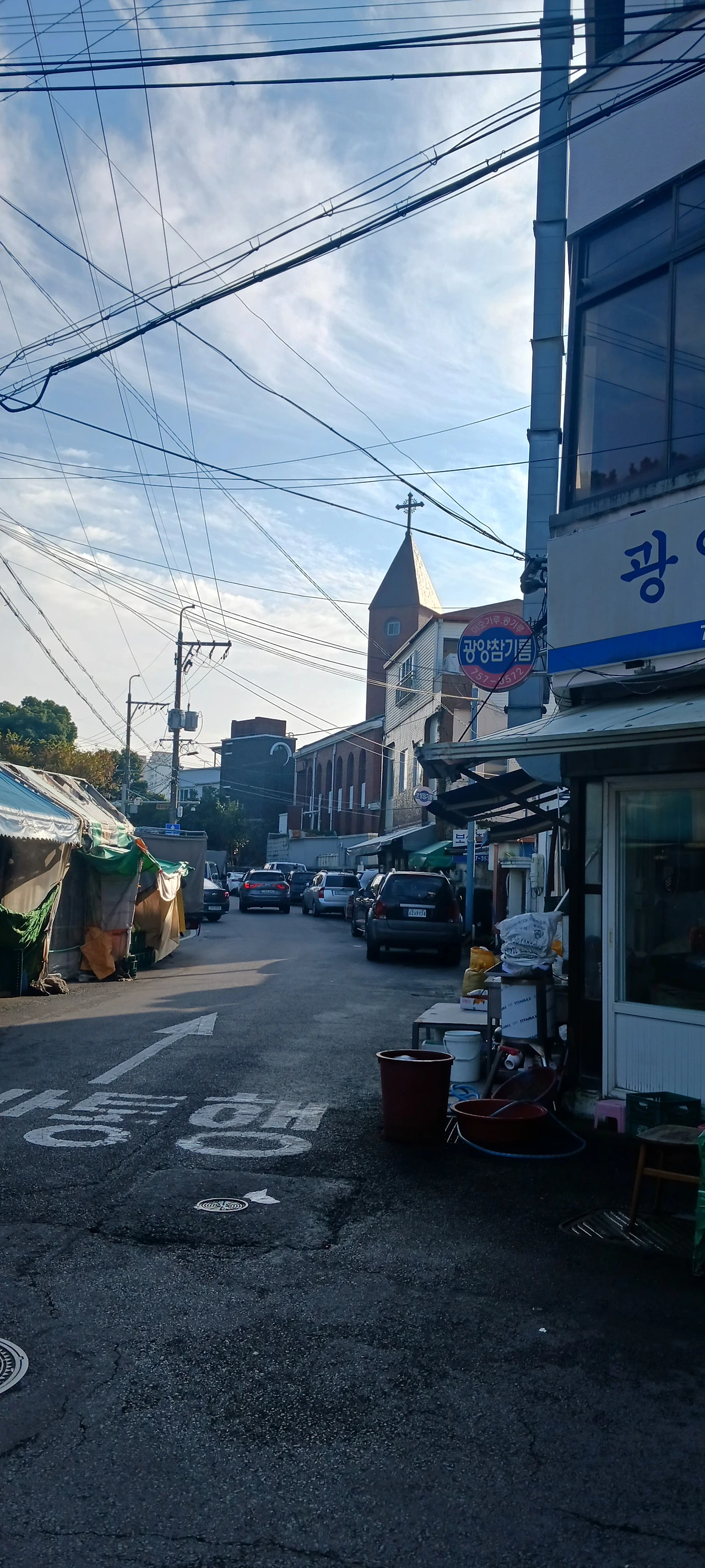 아침, 걸어서 40분. 보성시장을 지나 그 앞의 광양성당을 구경하고 약속장소인 제주포럼에 도착
