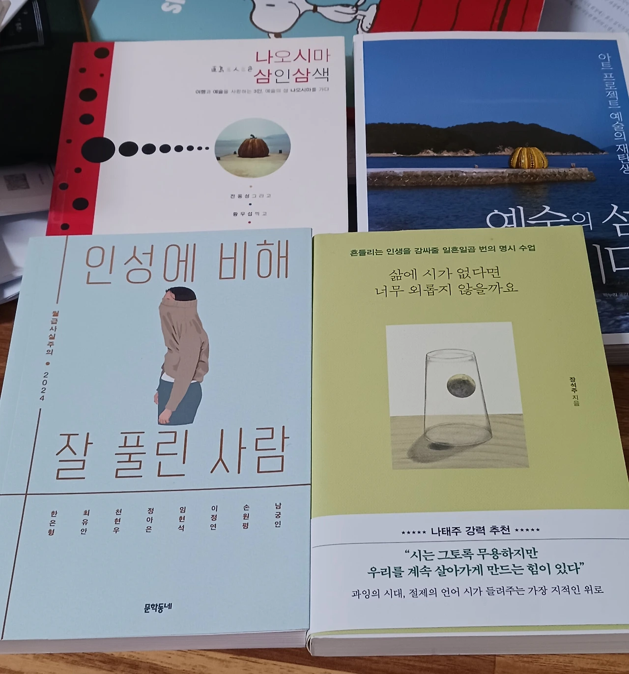 이번엔 삶에 시가 없다면 너무 외롭지 않을까요란, 시도 있고 설명도 있는 책/ 인성에 비해 잘 풀린 사람이라는 재미있게 술술 잘 읽힐 거 같은 책을 두고 고민 중이다. 겨우 3박 4일에 두 권은 무리이고, 분명 이동 중 책을 읽기보다는 아마 자주 기절한 듯 쓰러질 것 같다.(나의 저질 체력이여, 분명히 원인을 찾아야 한다. 사람이 이렇게 개 피곤할 수는 없다. ) 앨리아데의 <성과 속>을 들고 가고 싶은데, 두께는 적당하나 하드커버다.(재미와 흥미로서의 독서가 점점 멀어지고, 공부 연구 관련 책만 보고 있다. 나처럼 넓게넓게 읽던 인간도 물리적 시간의 한계에 부딪쳐서 자꾸만 공부책만 보게 된다.)