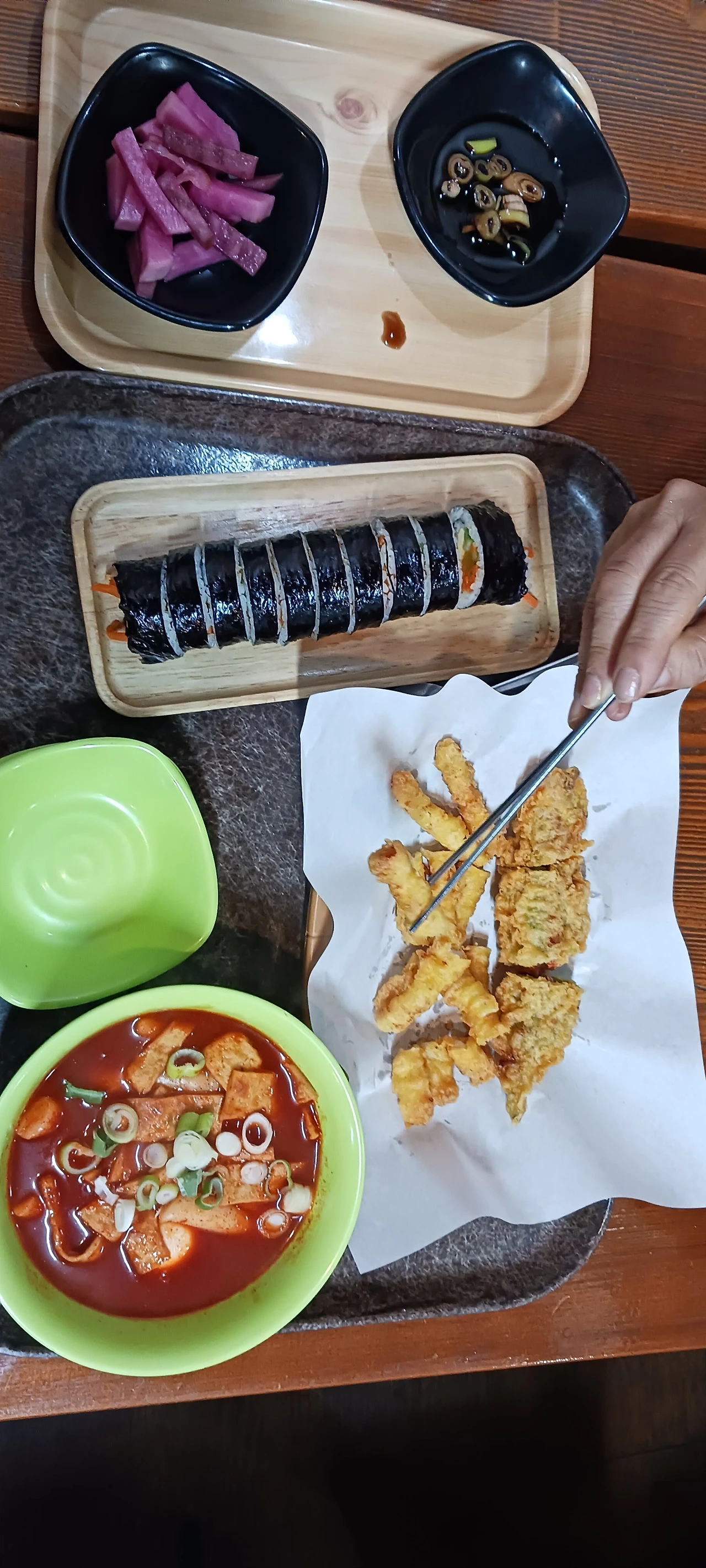 면접을 같이 본 아는, 친한 선생님과 뒷풀이 겸 저녁은 김밥, 떡볶이, 튀김. 간단하게.........