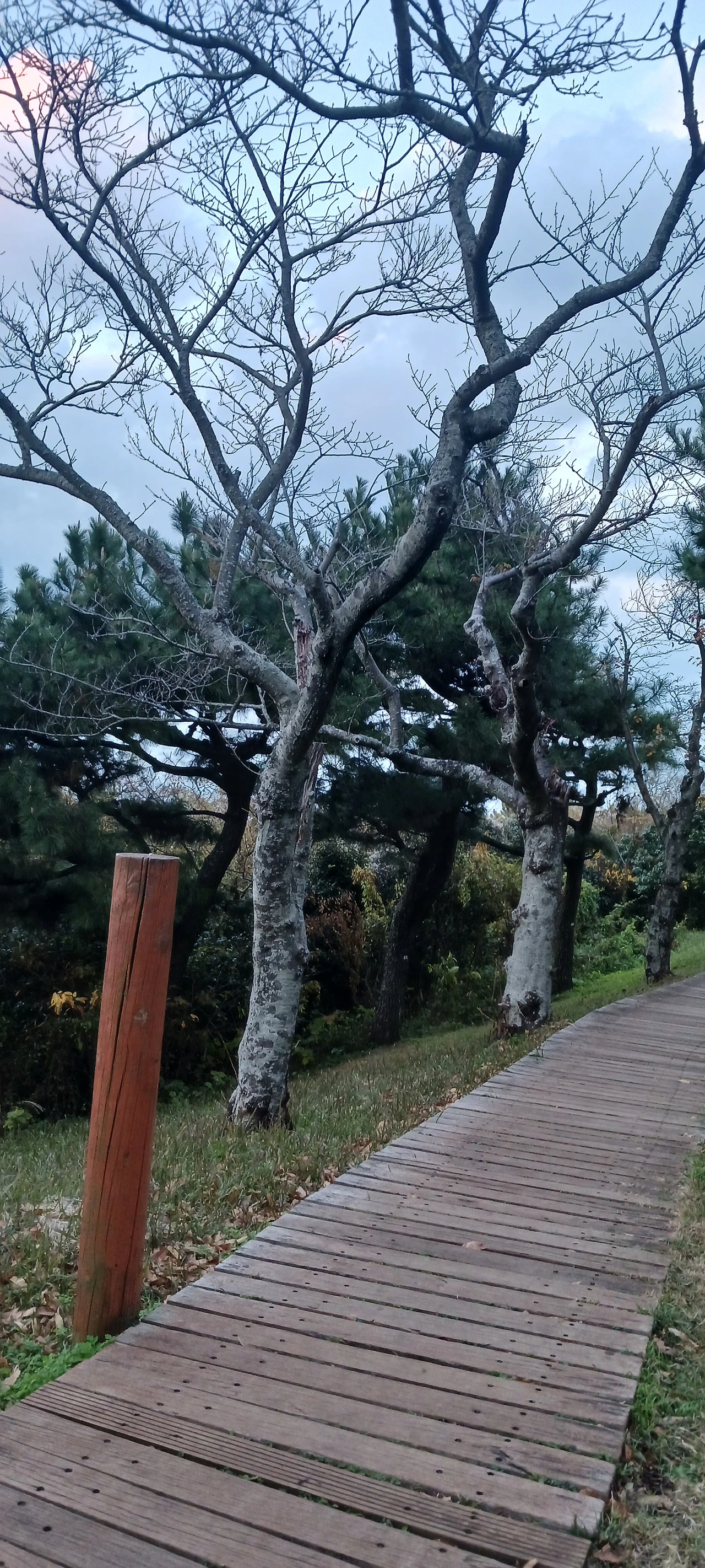 사라봉을 오르고 내려가서 옆길로 가면 학교 쪽문이 나온다. 그 코스로 등교를 한다. 최소한의 살기 위한 운동이다. 1시간 조금 넘게 여유롭게 출발해야 한다. 정장 입고 구두 신는 복장을 좋아하는데, 이런 코스를 택하다 보니 등산복차림이거나 츄리닝바람이다. 사라봉의 저 나무를 매번 같은 각도로 찍는다. 나중에 보니, 저것은 벚나무였다.