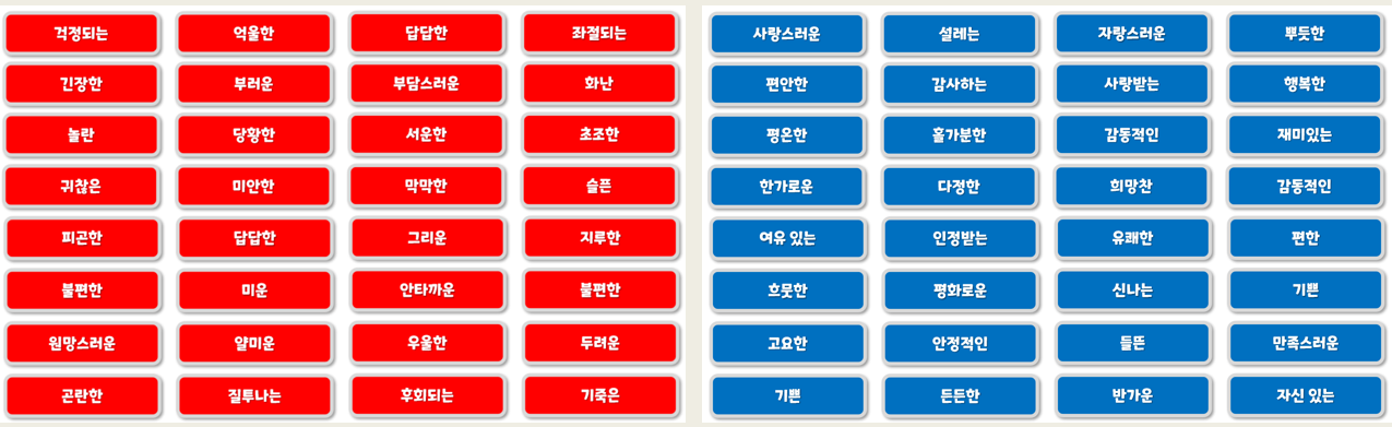 아래에 빨간 기분/파란 기분은 기분을 조금 분화한 것들이다.