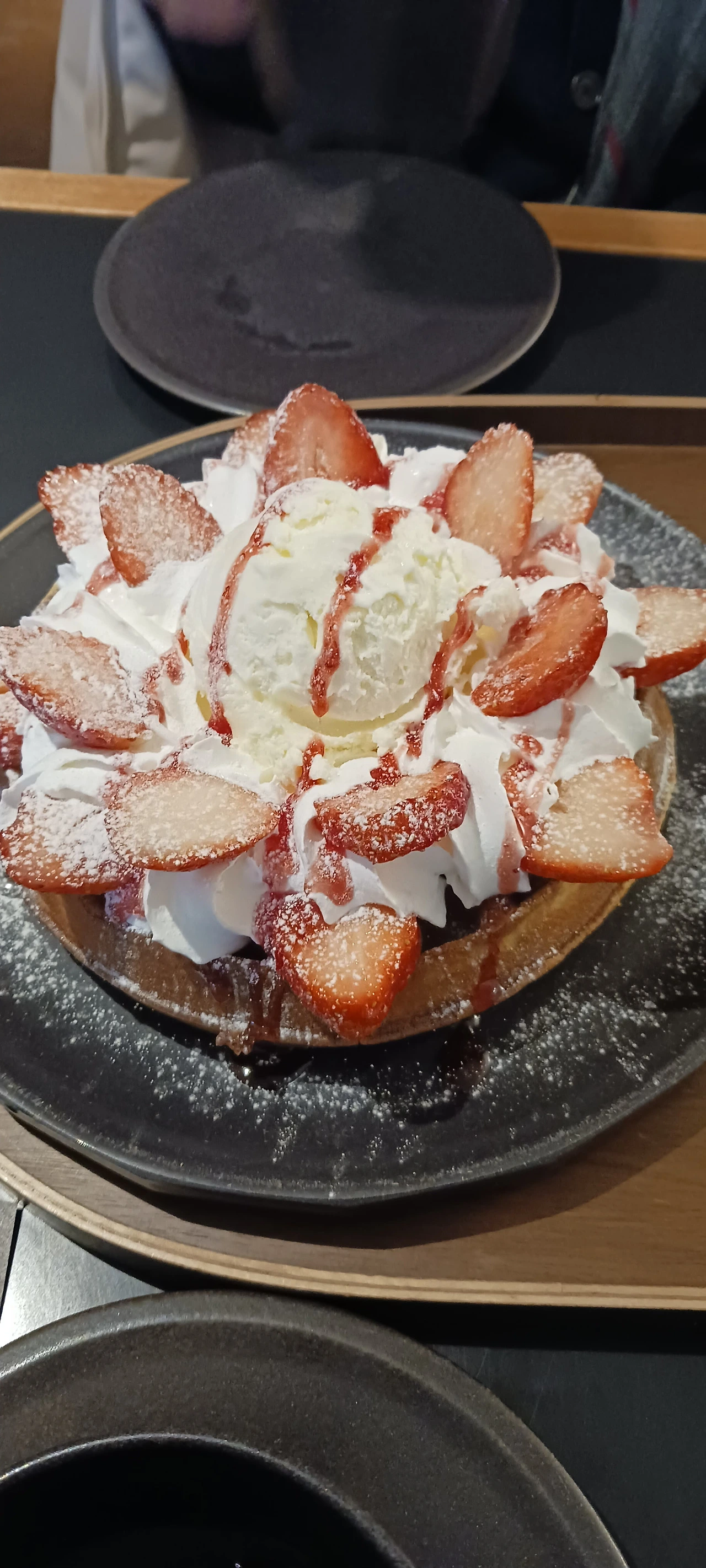 딸기샌츠위치로 만족하지 못해 카페에 가 딸기와플을 주문했다. 딸기 샌드위치에서 느끼고 싶던 상상의 그 맛, 바로 이 맛이야....