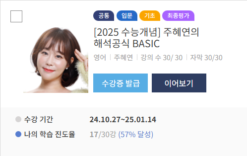 적당히..... 앞뒤 문맥으로 단어 몇 개 아는 걸로 해석하고 지냈다는 것을 알게 되었다. 뭔가 하나는 진지하게 공부를 하는 것처럼 성취감 느끼며 진도 밟으며 해야 할 거 같아, 인강을 듣기 시작했다. EBS 나 인강 강사의 커리큘럼을 타는 게 잘만 따라가면 시간대비 학습성취정도 확실하다. 사교육시장이 아주 잘 발달했다.