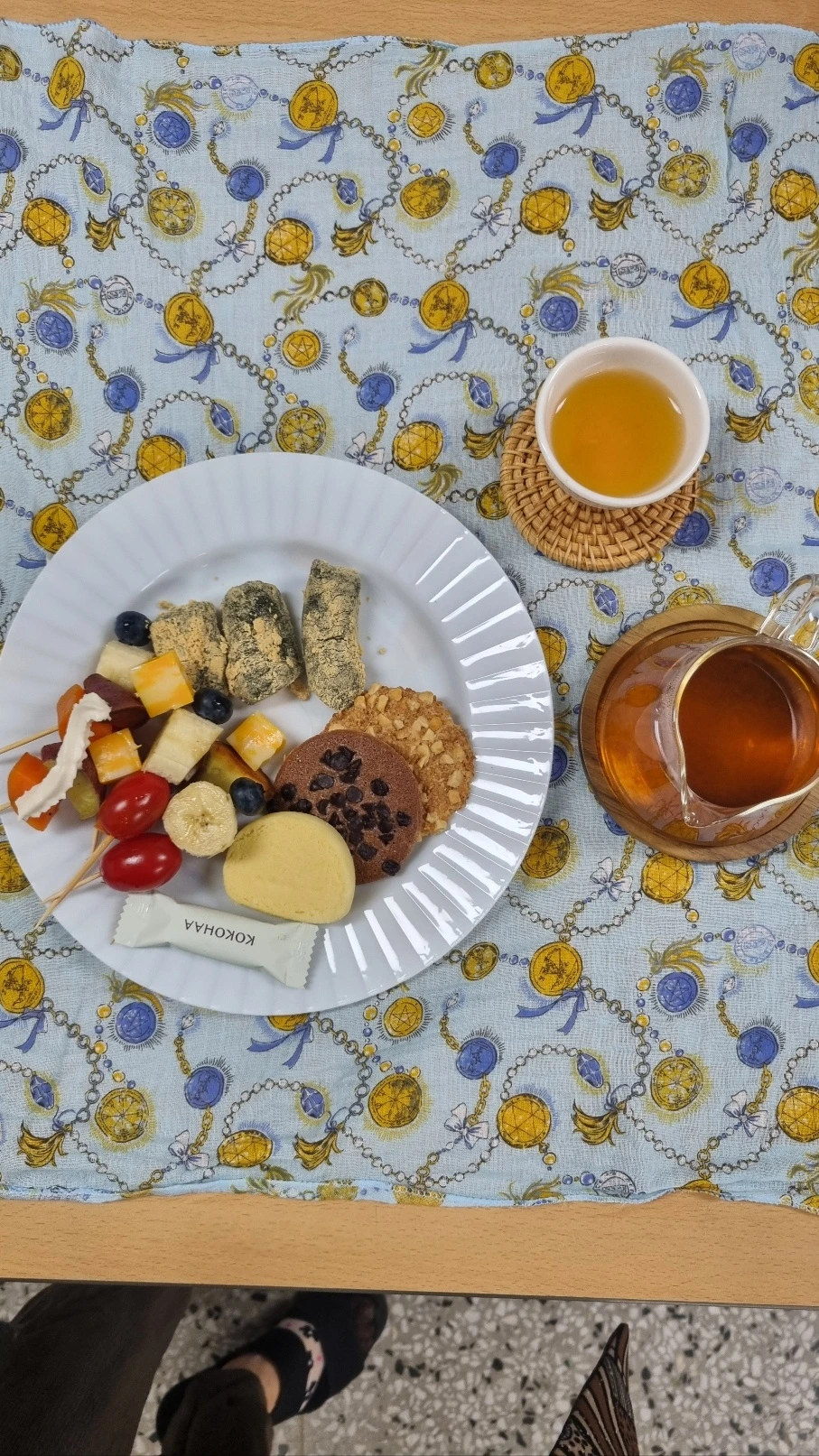 다른 사람들이 떡, 쿠키, 캐러멜, 차..... 크게 의논하지 않았는데, 겹치지도 않고 구색이 잘 갖추어진 차림이었다.