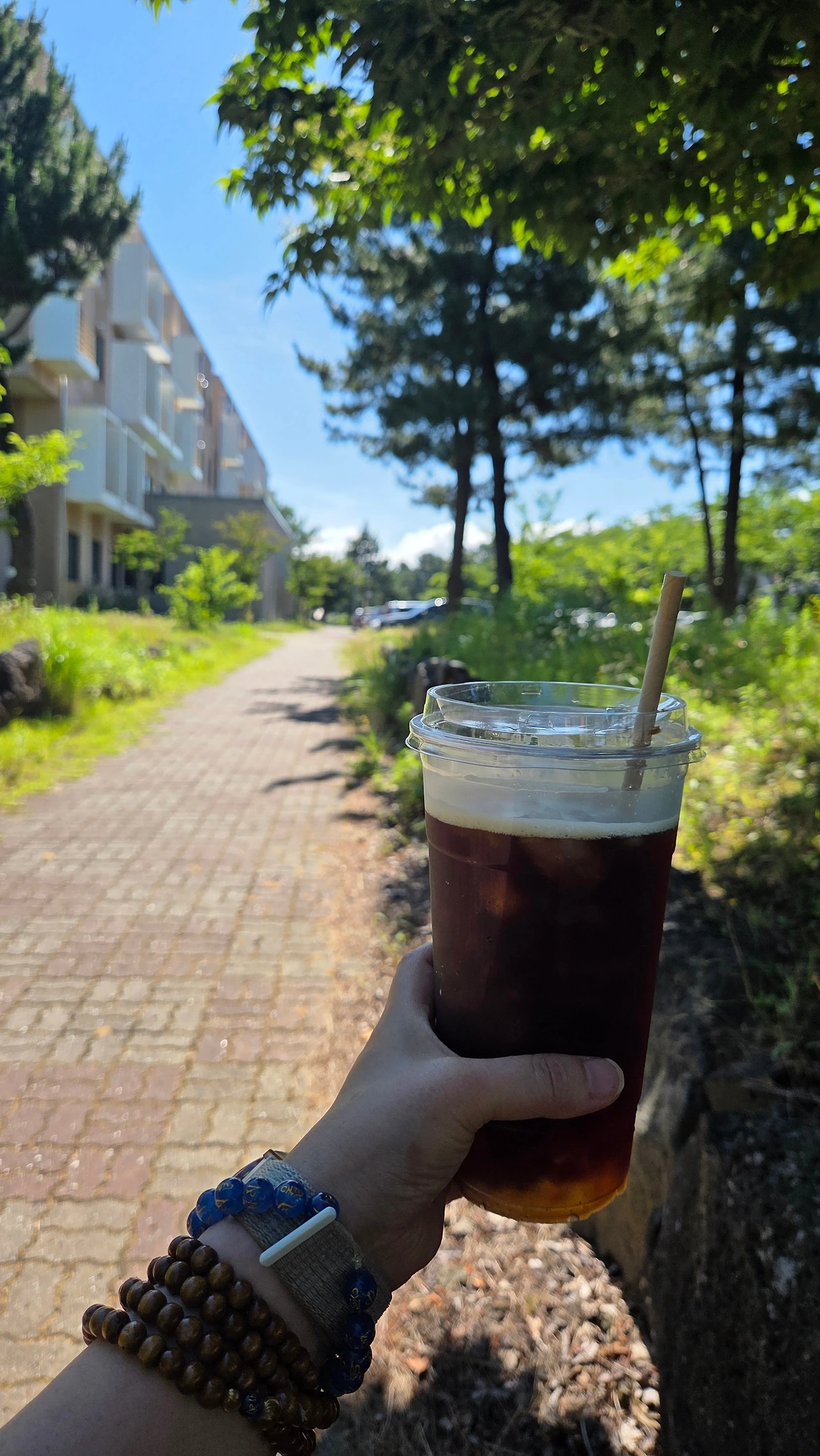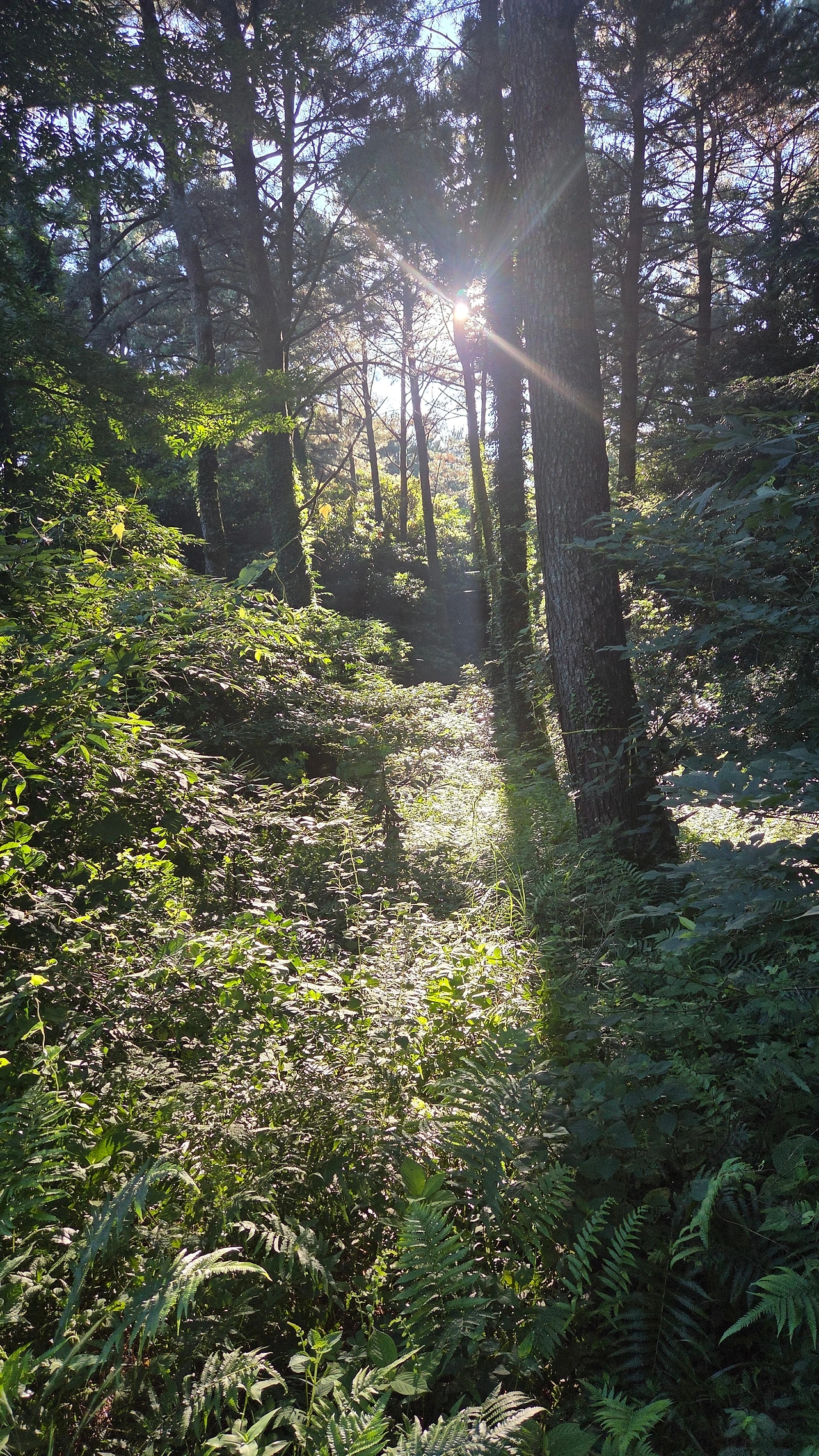 햇살이 비추기 시작하는 시간에, 숲 속을 걸어 등교를 합니다.(학교 가는 정류장 전에 내려 숲속길로 등교. )