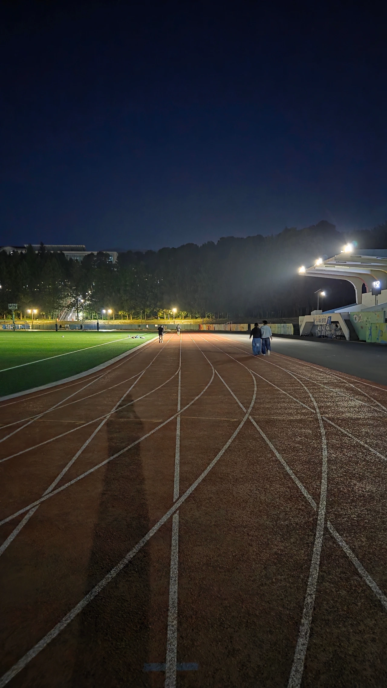 운동장에서 달리기를 한다. 밤 운동장. 좋다. 비 오는 날이면 더 좋다. 여벌의 옷과 샤워시설이 간절하지만 그래도 달린다. 답답한 날일 때도 있고, 며칠 운동을 안 해서 몸이 찌뿌두둥한 날일 때도 있고, 공부고 뭐고 도서관에 앉아있는 게 지루한 날일 때도 있다.
