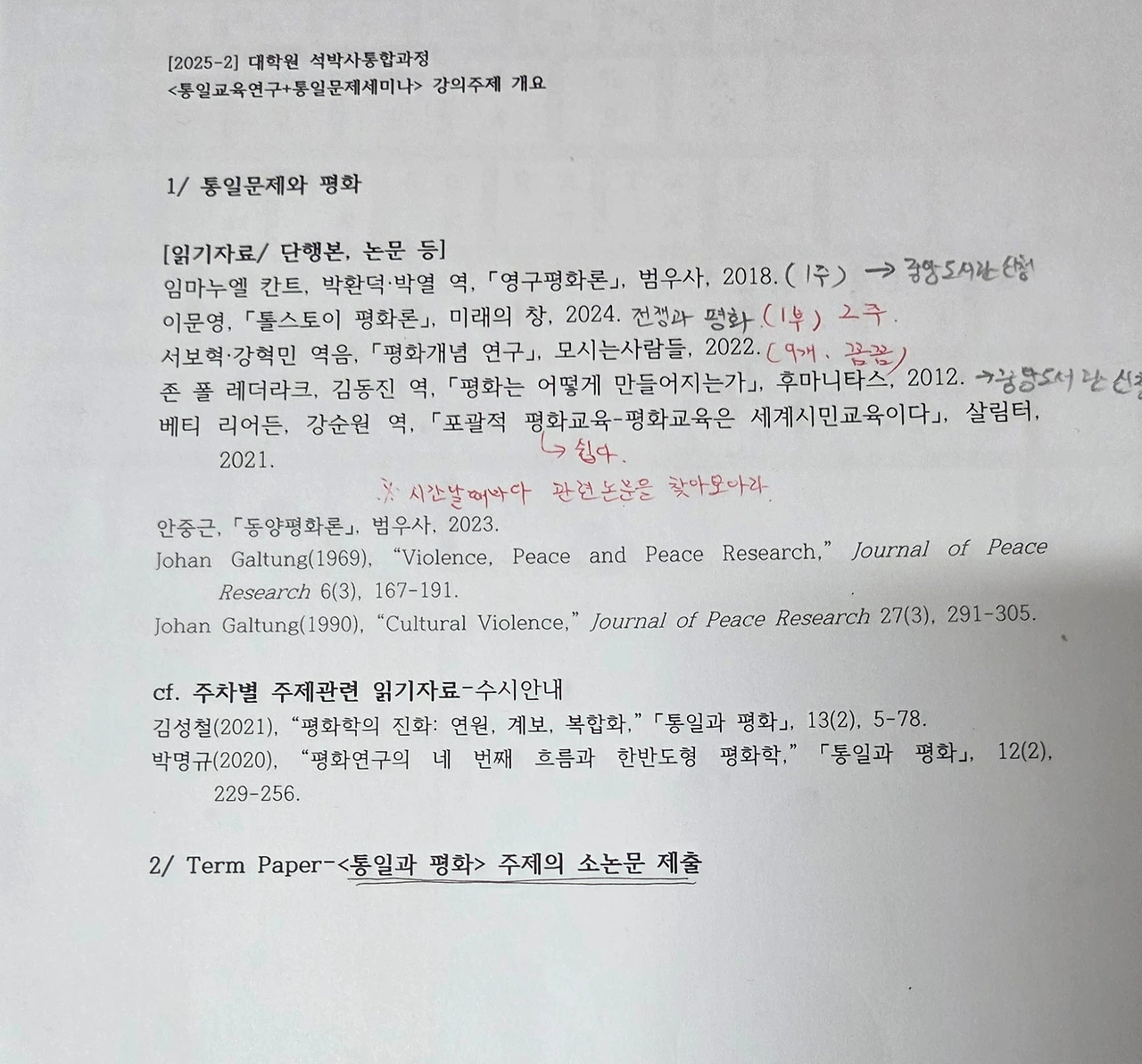 당장, 월요일에는 '평화학의 진화: 연원, 계보, 복합화" 논문을 읽어가야 한다. 토론으로 질문하고 대답하고...로 하겠다고 하셨다. 요약발표 없는 이번 수업에 단 한 번뿐일 날.