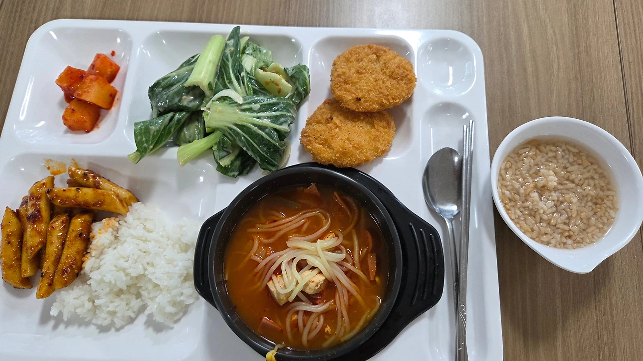 샤워하고 학교에 간다. 천 원의 아침밥, 오늘은 간편식이 아니고 식사를 한다.