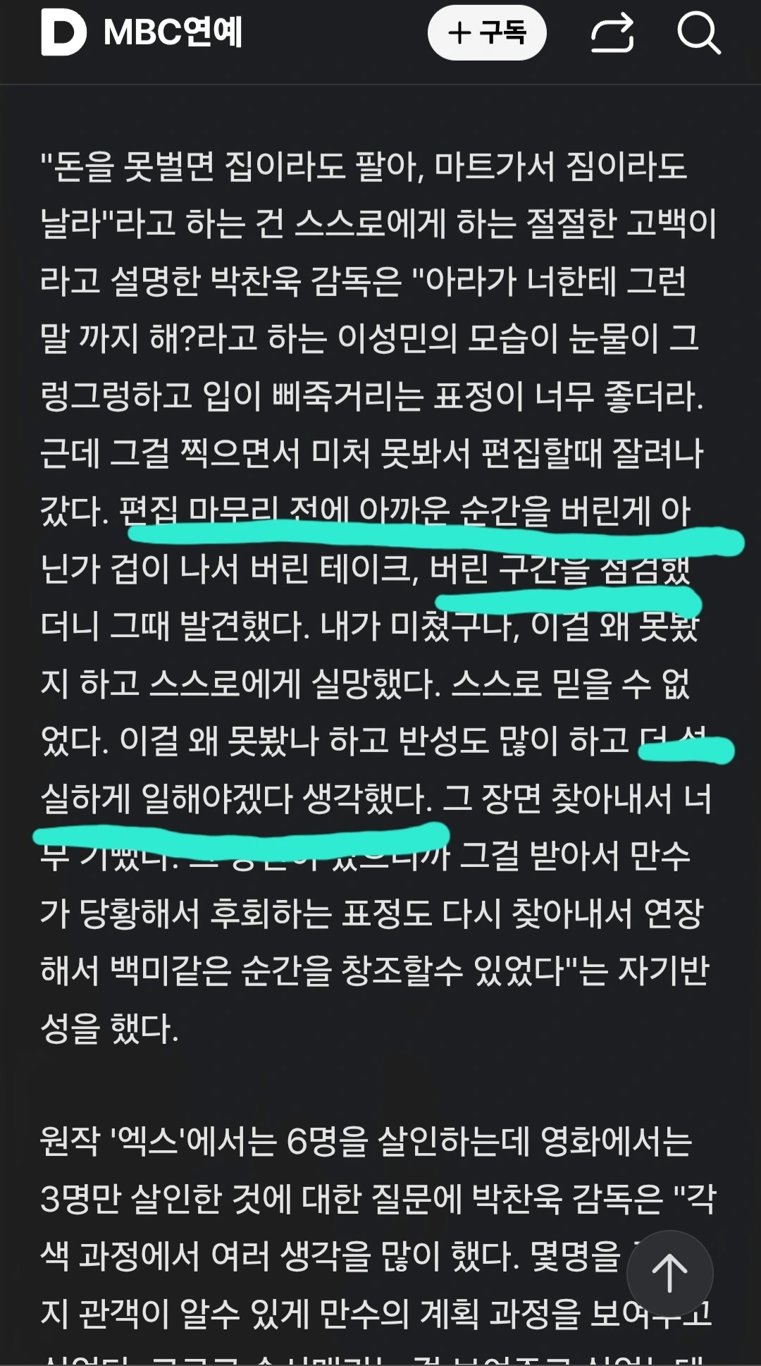 버린 것에서 놓친 것이 있는지, 잘려나간 편집본을 다시 살피는 그 치밀함. 더 성실하게 일하겠다는 다짐, 자기반성의 박찬욱 감독님.