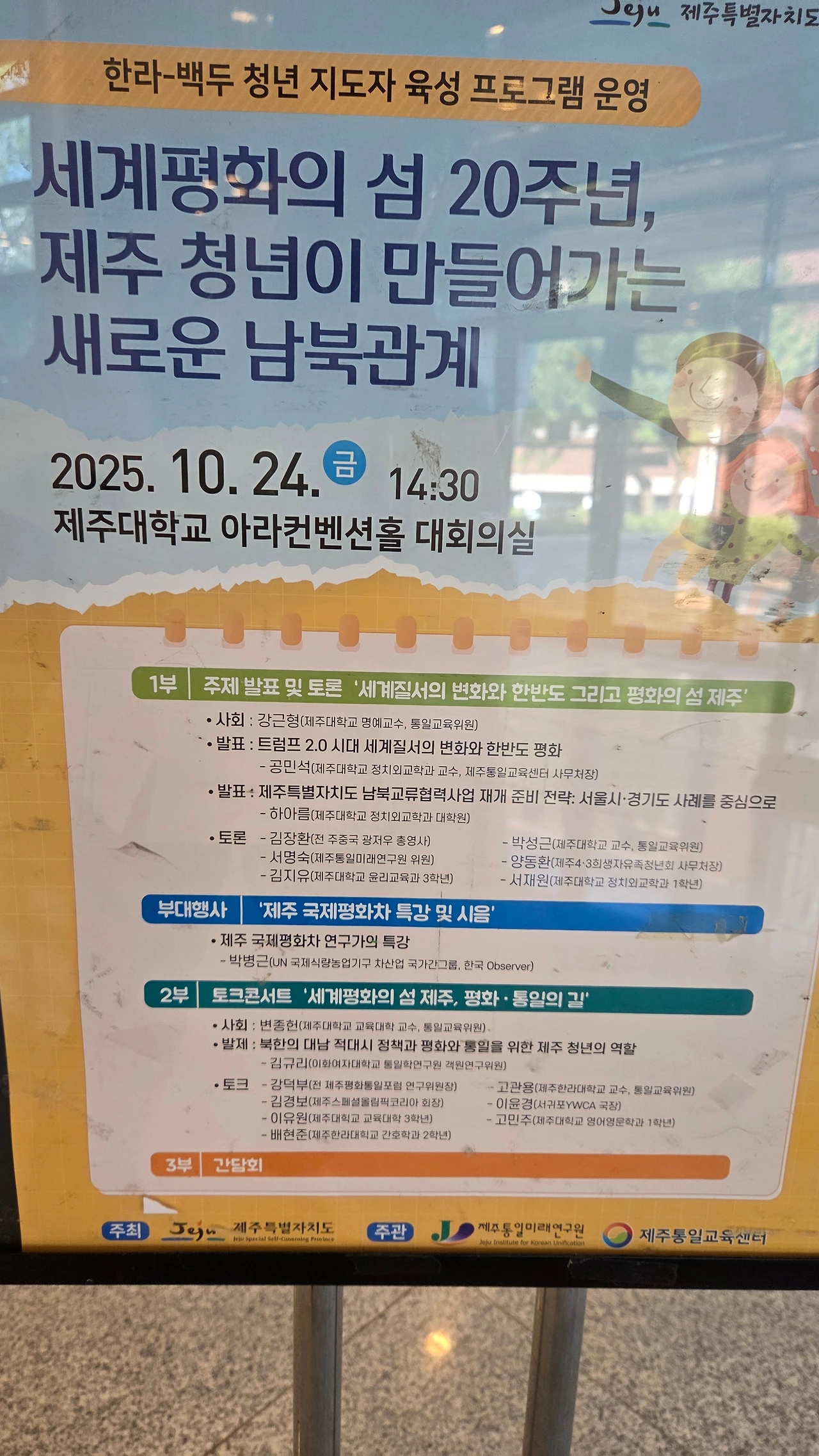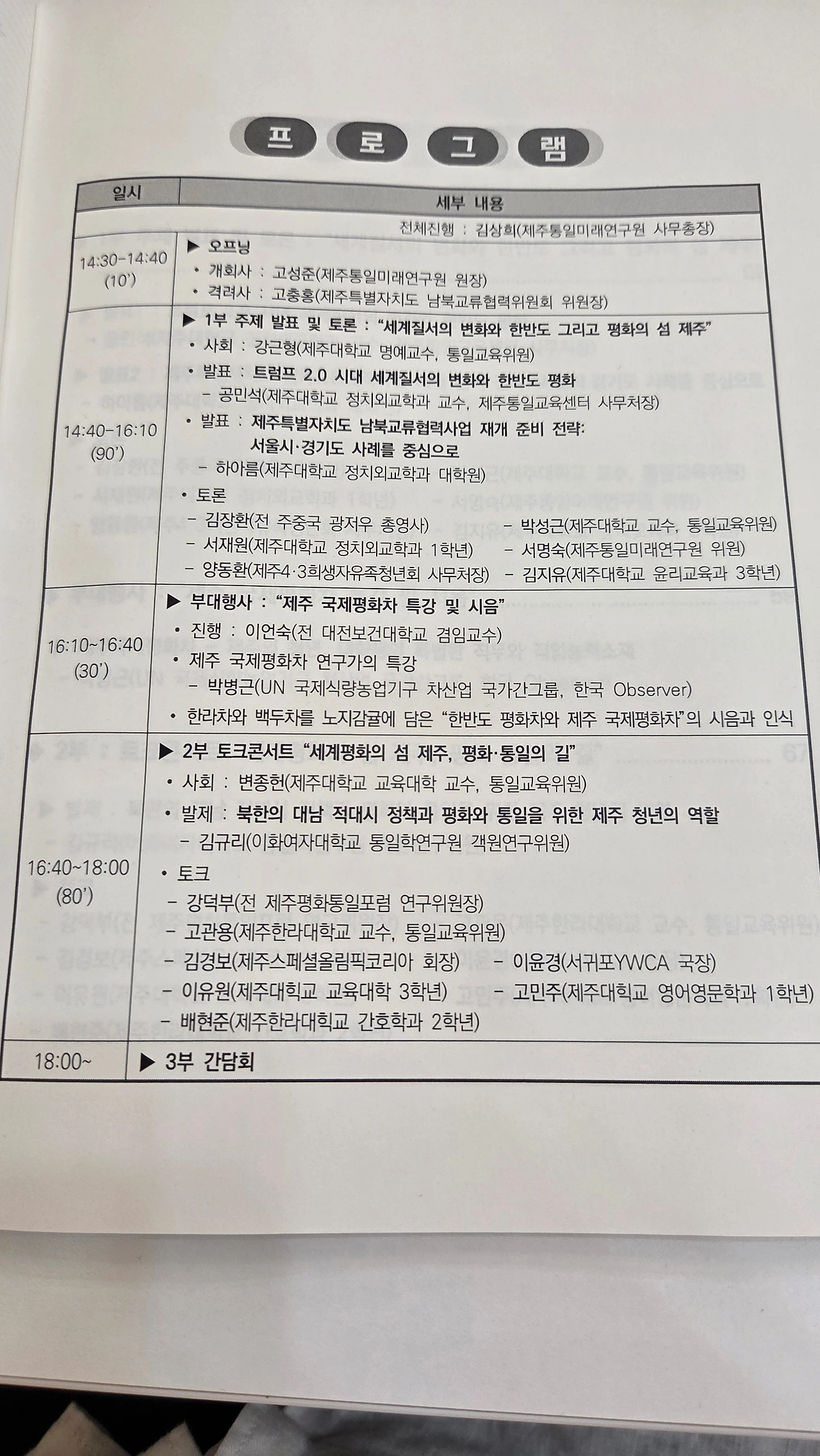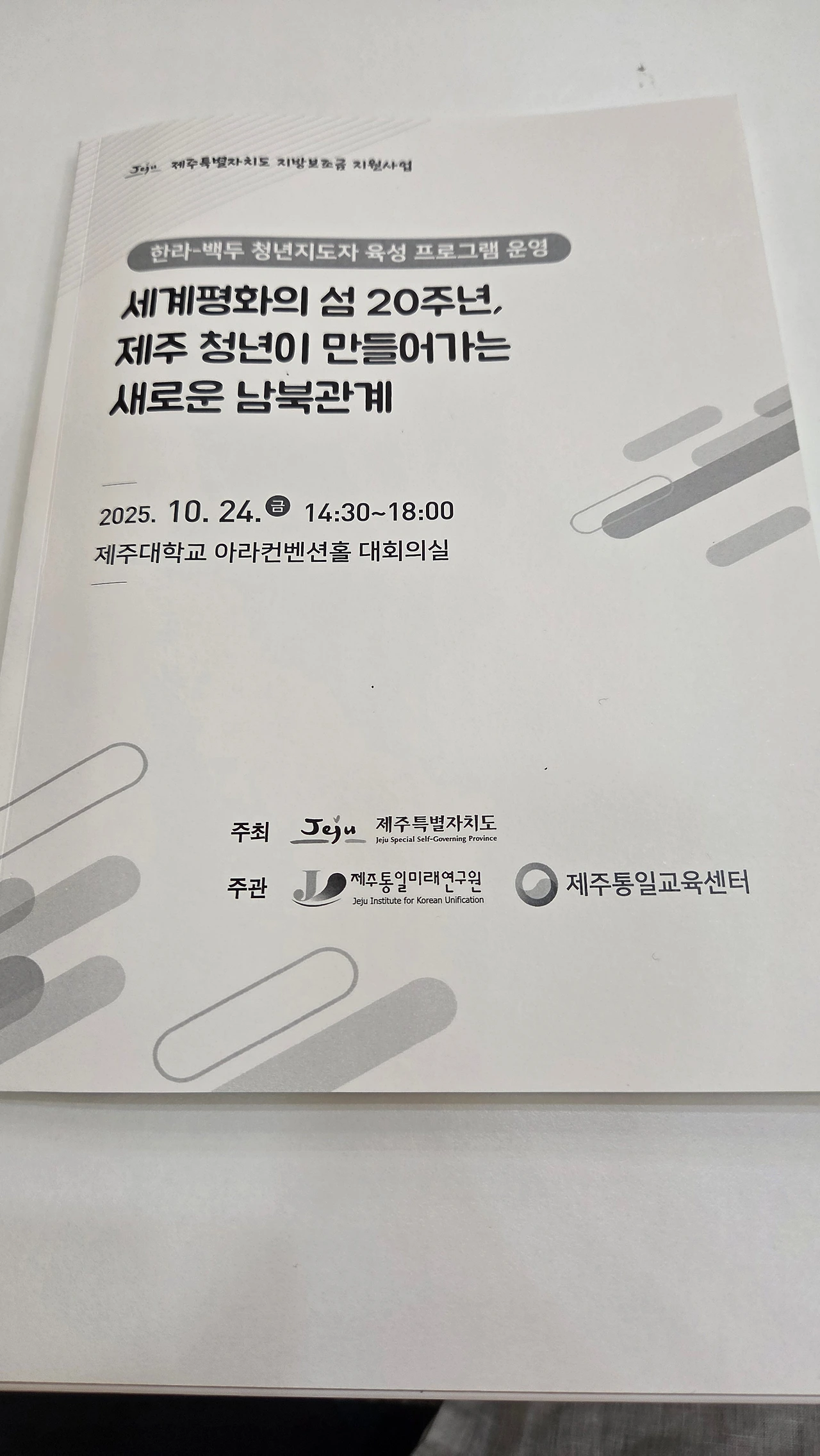 오늘 지나가다 들른 [세계평화의 섬 20주년, 제주 청년이 만들어가는 새로운 남북 관계] 프로그램은 유용했다. 이런 게 공부의 기쁨이다. 조금 아는 게 있다고 내용이 이토록 흥미진진하다니....