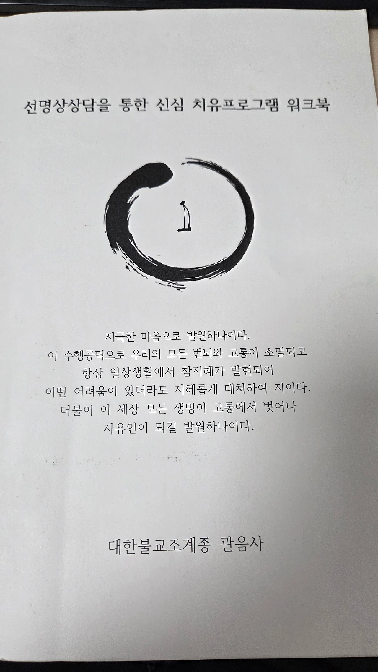 '마음의 안정을 찾는'이라는 부제가 붙었네. 모집 시 그런 설명은 없었던 듯한데...